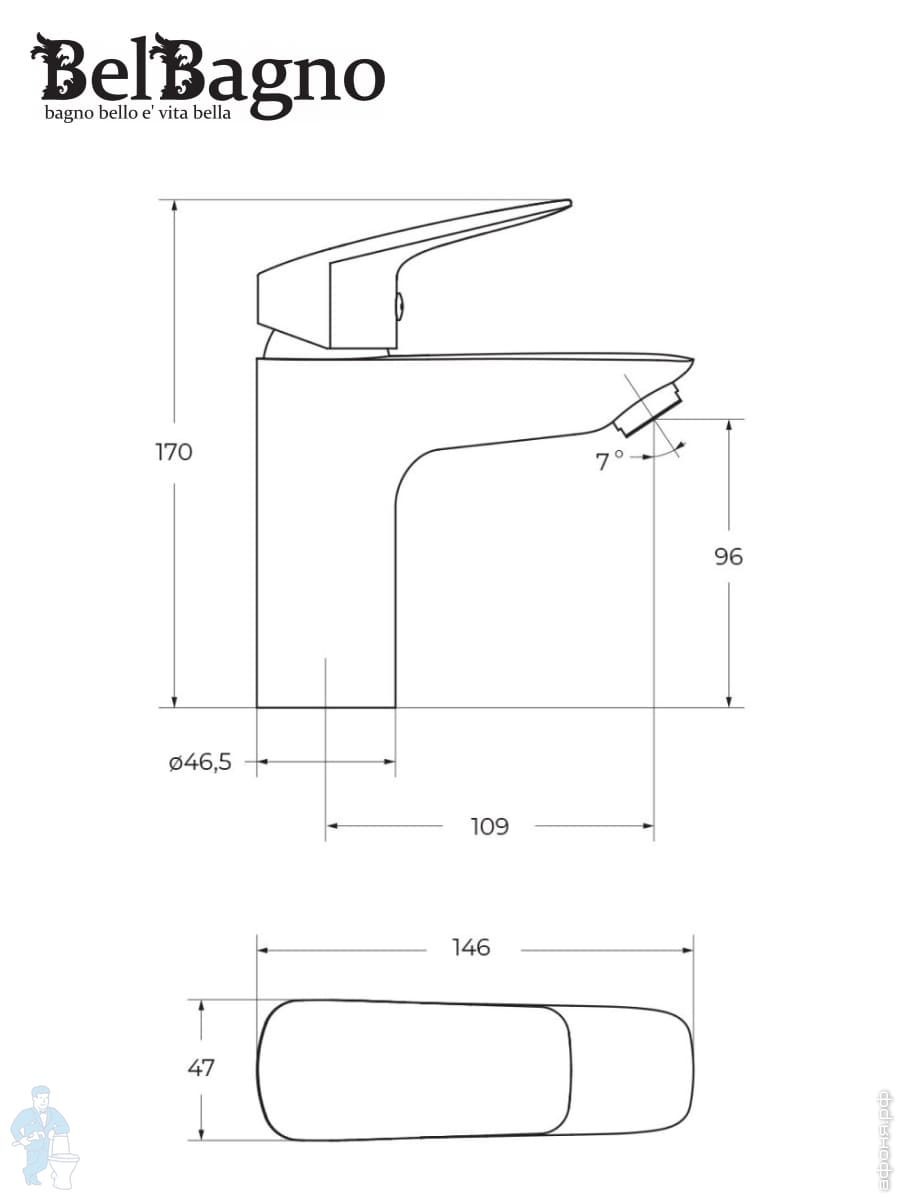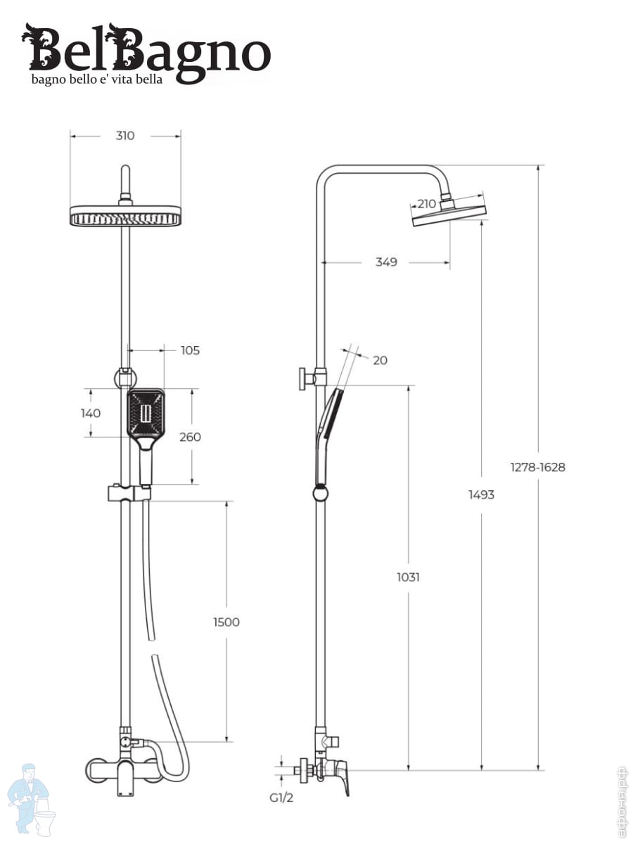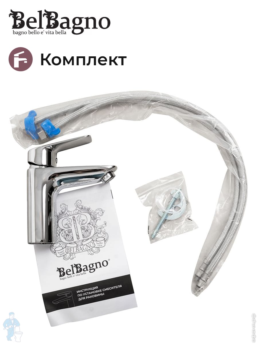 Смеситель для ванны/душа BelBagno DUE-VASM-CRM однозахватный,фиксированный излив,с ручным душем,хромКод: 312606