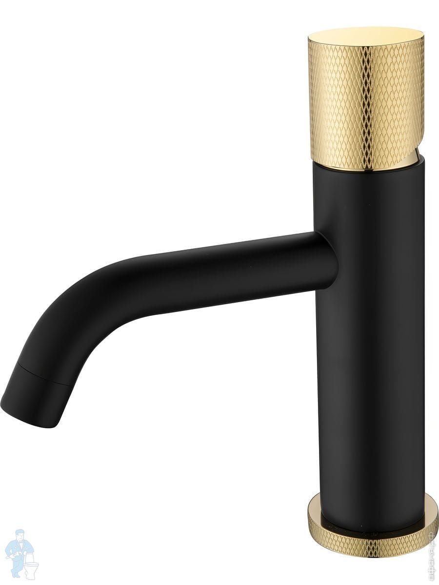 Смеситель Boheme Stick 125-BG для раковины, встраиваемый, однозахватный, ручка:diamond,черный+золотоКод: 296753
