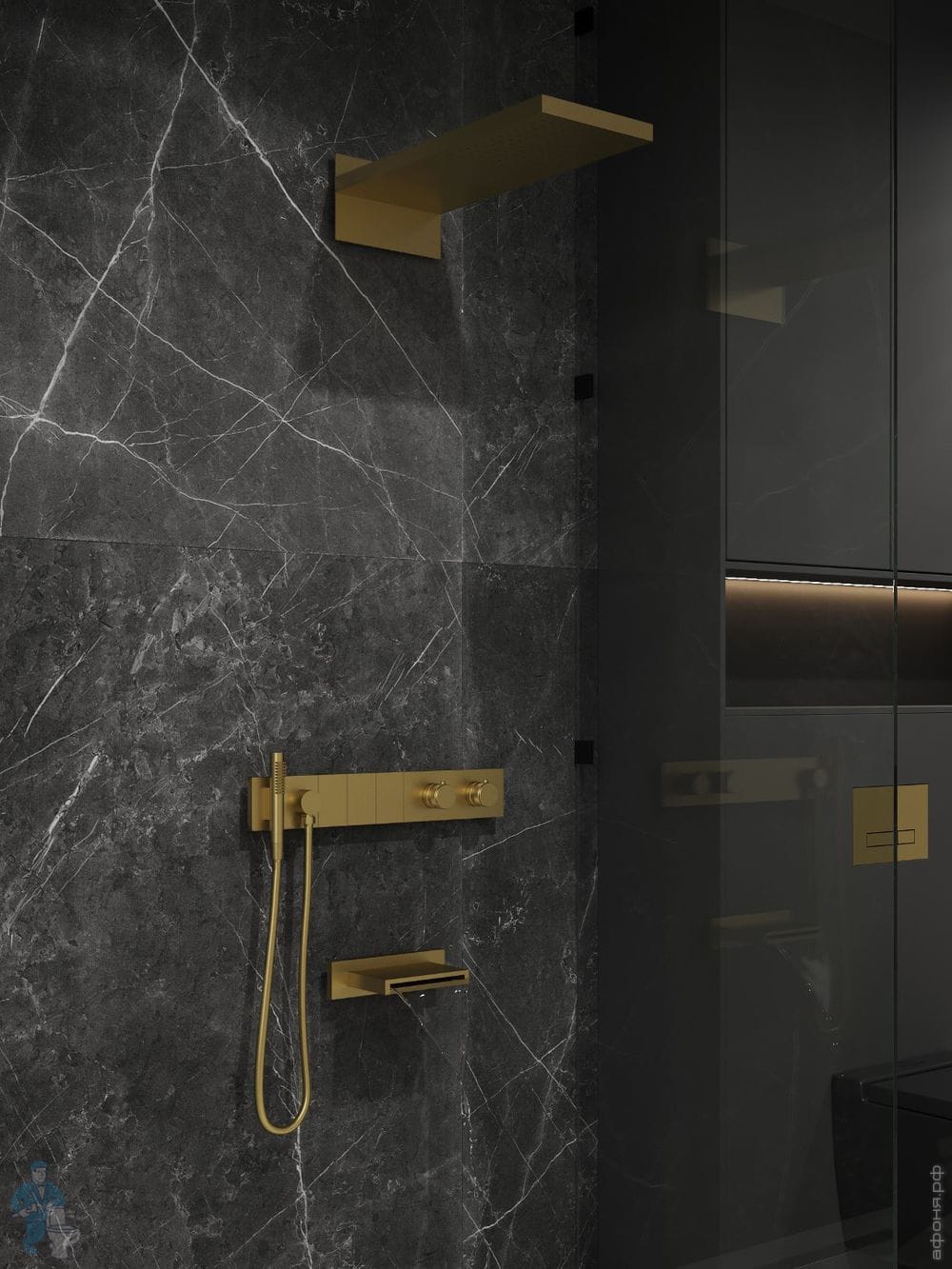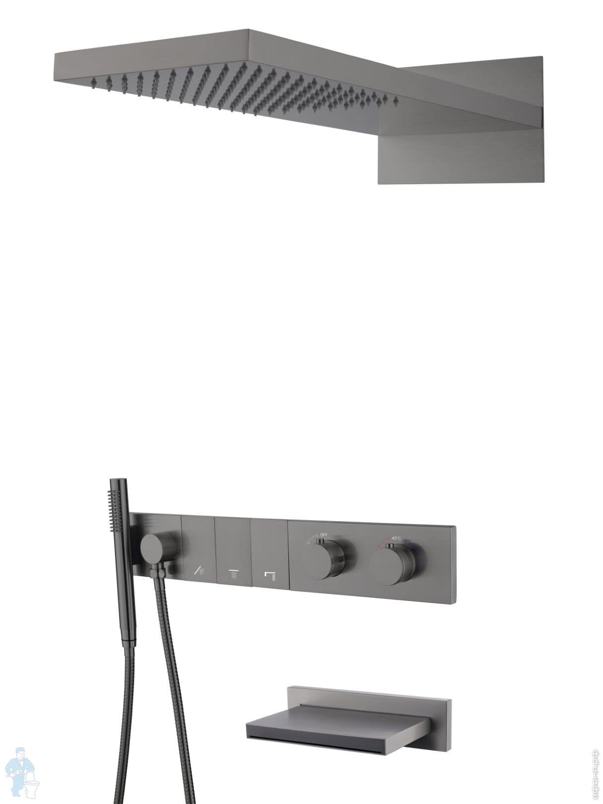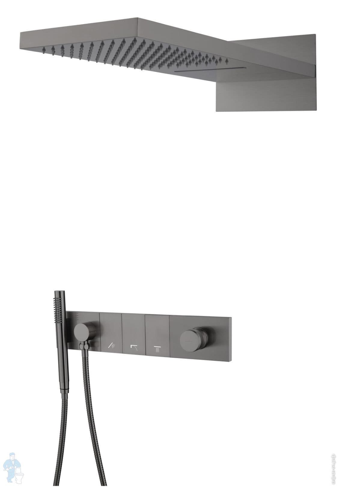 Душевая система Boheme Zodiac 133-2-SGM встраиваемая,термостат,излив, верхний/ручн душ, графит глянцКод: 354801