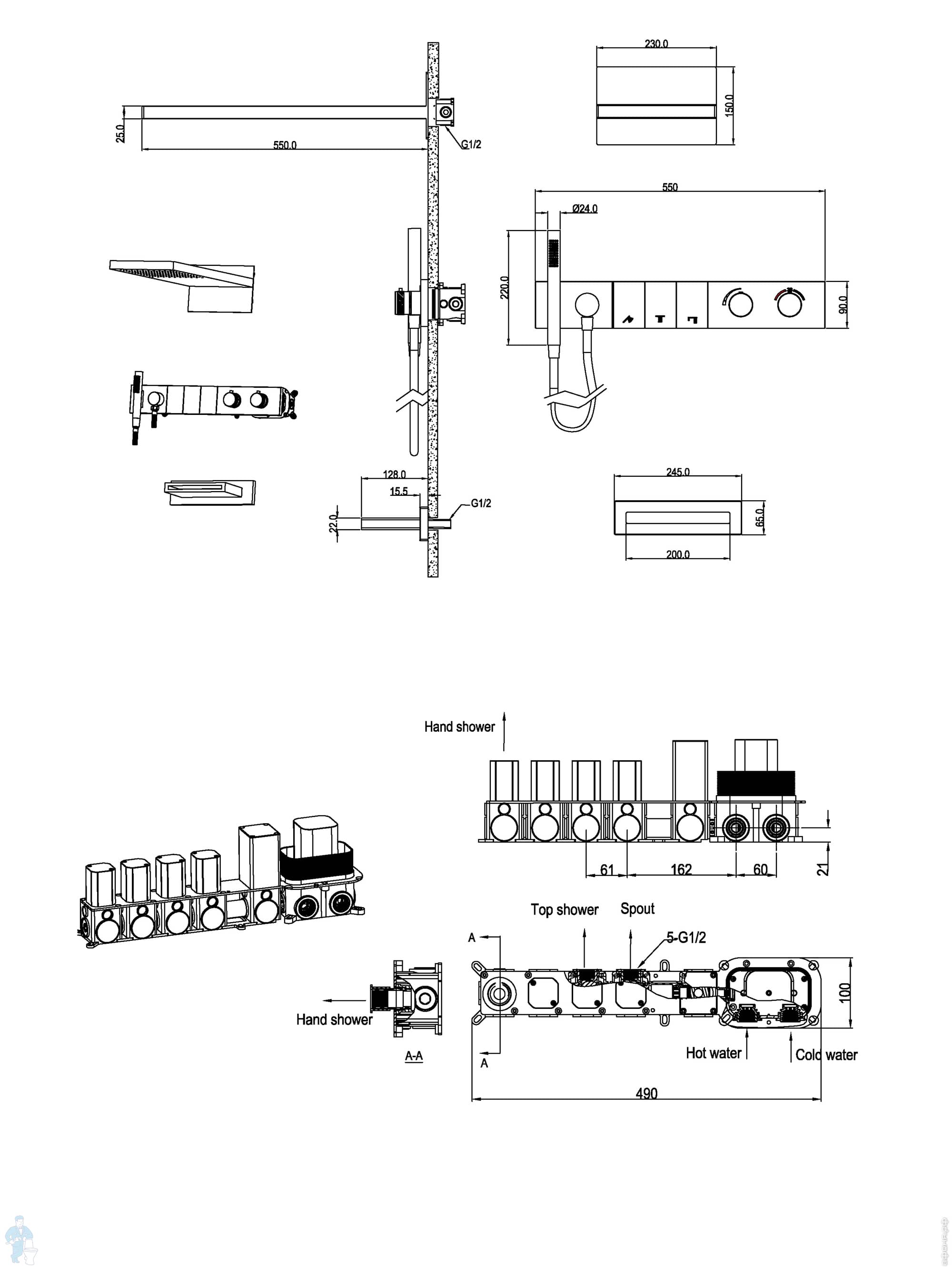 Душевая система Boheme Zodiac 133-2-MW встраиваемая, термостат, излив, верхний/ручной душ, белый матКод: 354802