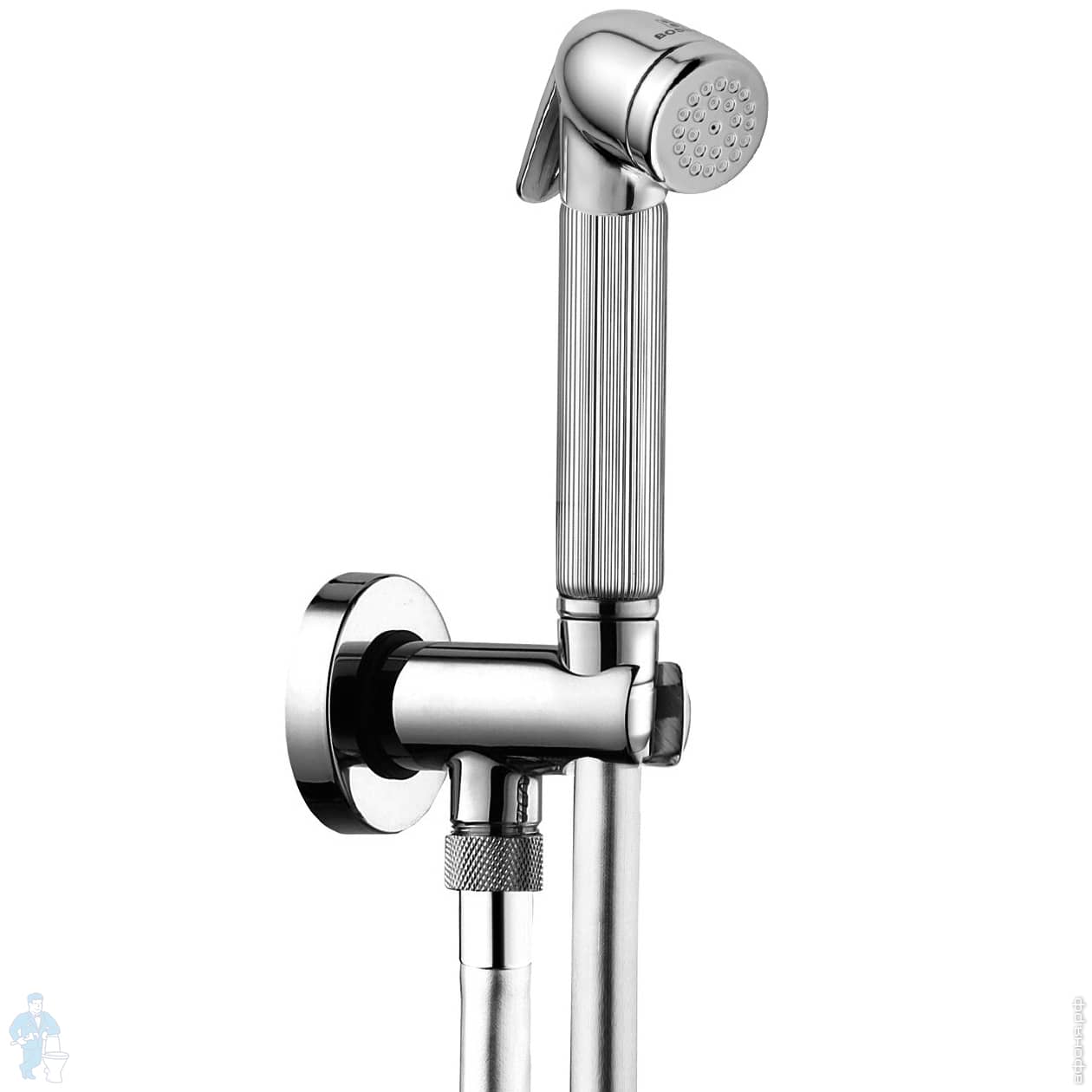 Гидрощетка Bossini Nikita для унитаза, держатель с блокиратором воды, шланг 125см, хром C69006.B.030Код: 145307