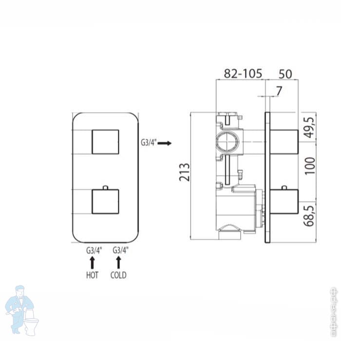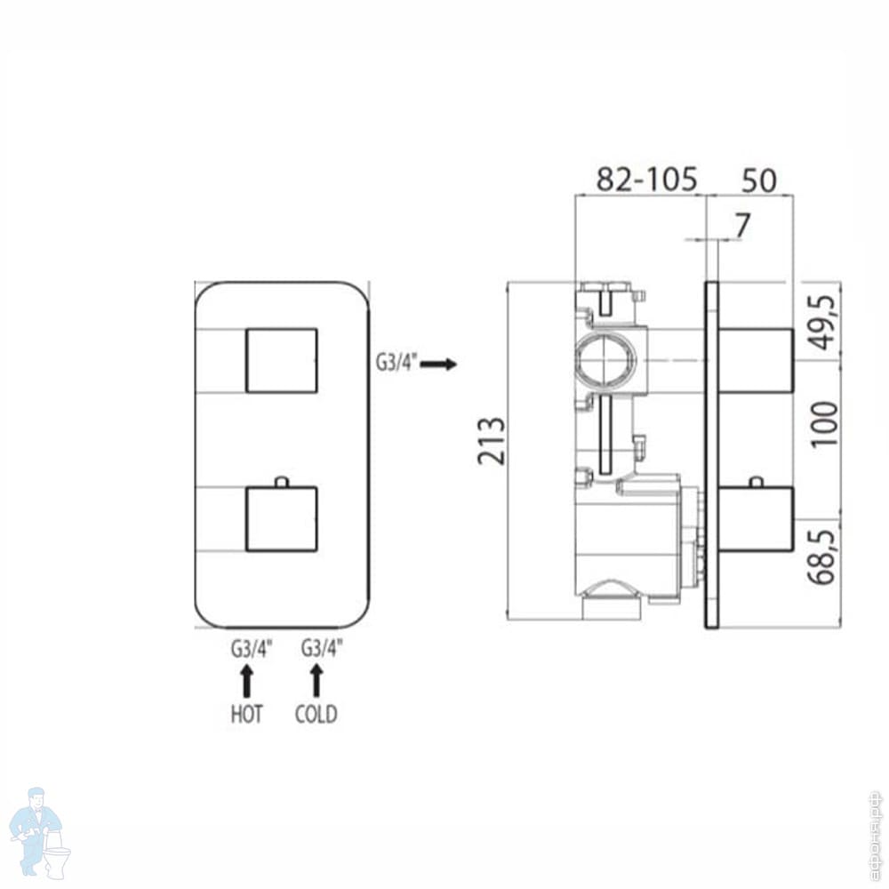 Встраиваемая часть Bossini Nobu Z90130 встраиваемого смесителя, для установки на стену, нержав.стальКод: 312904