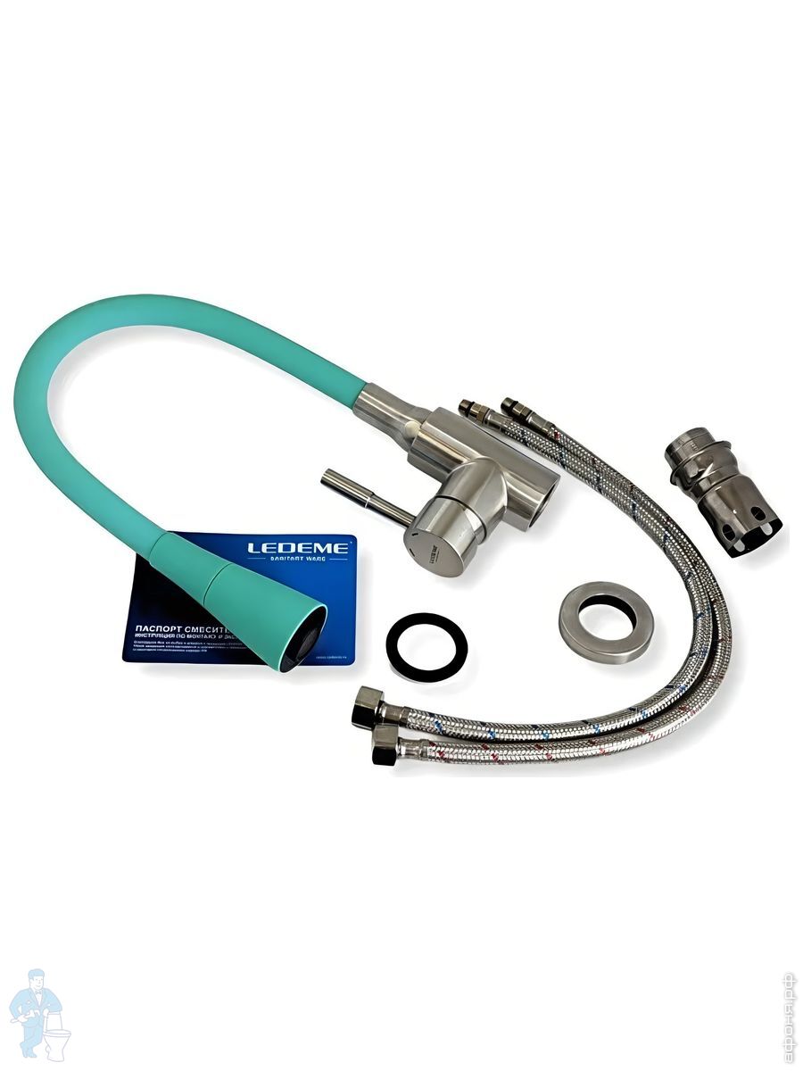 Смеситель Ledeme для кухни, поворотный излив, однозахватный, с душевой насадкой, бирюзовый L74199-11Код: 294259