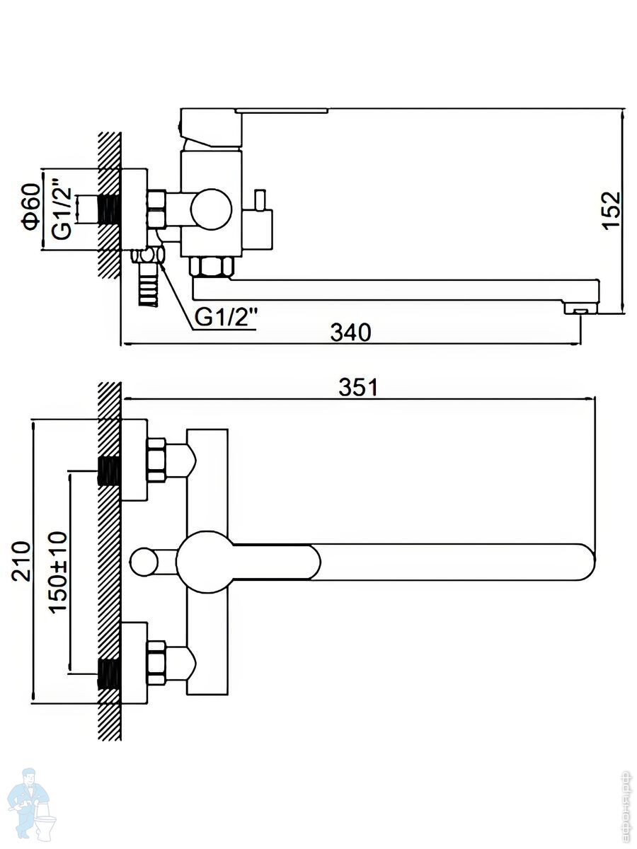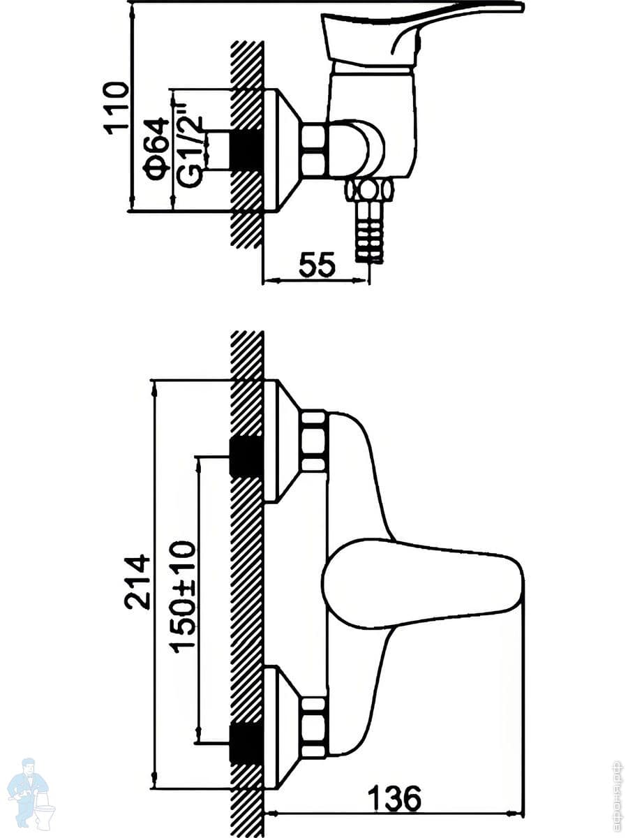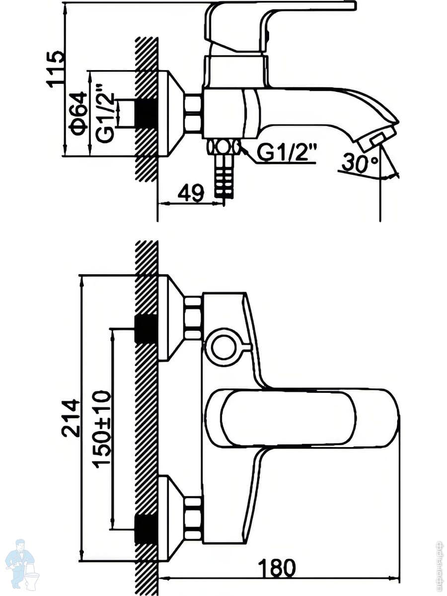 Смесители для ванны/душа однозахватные