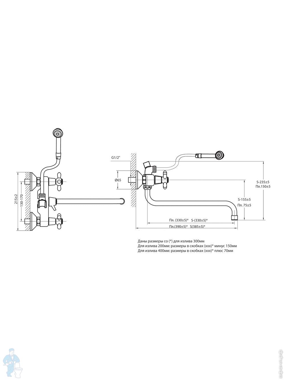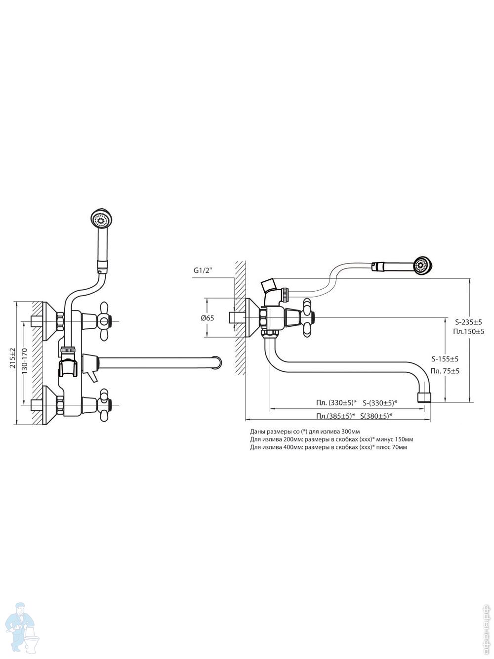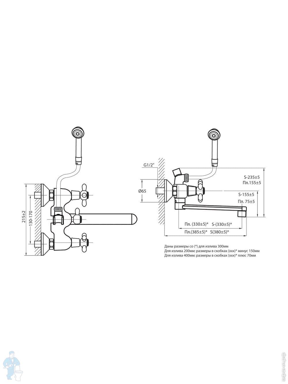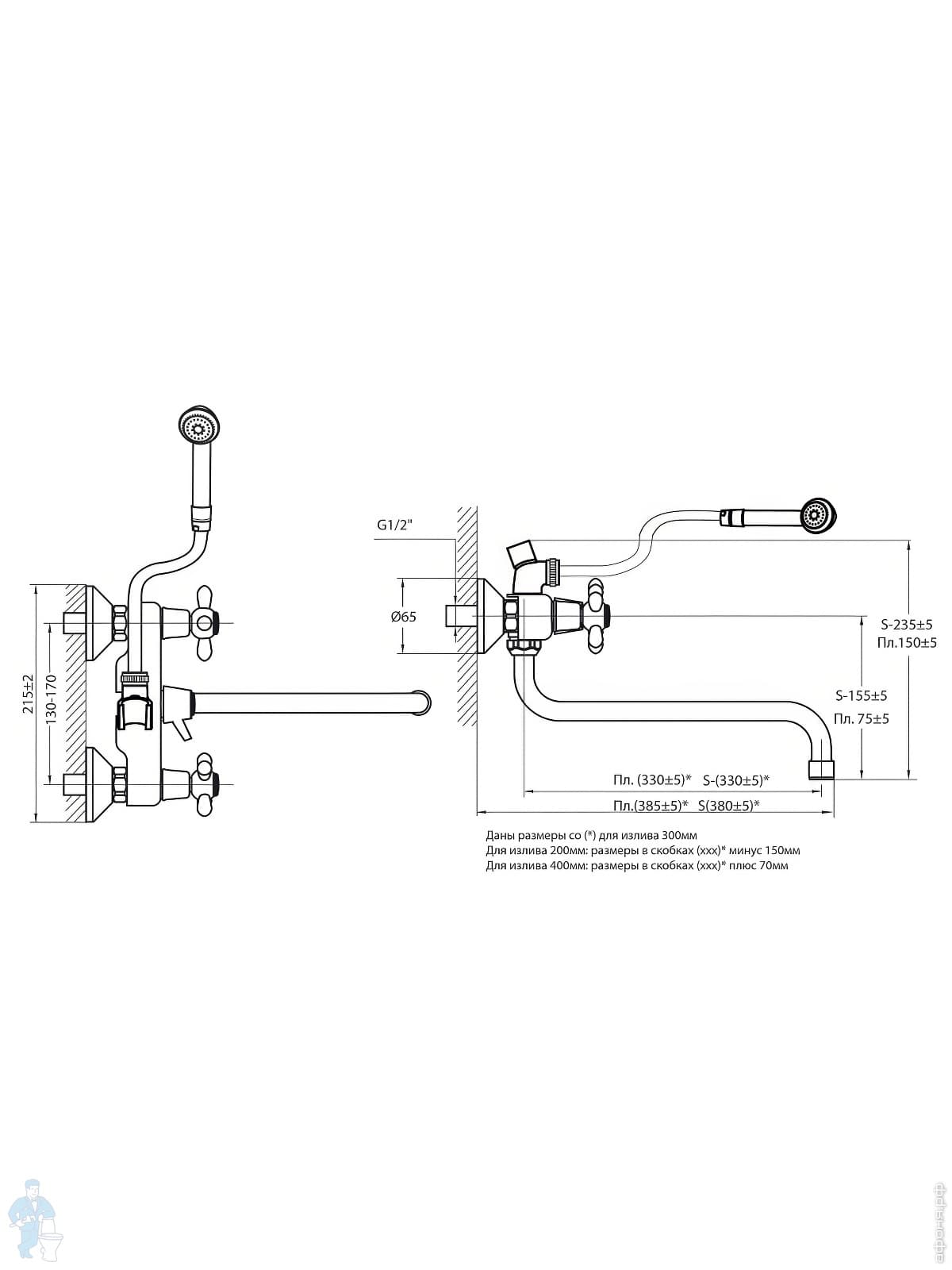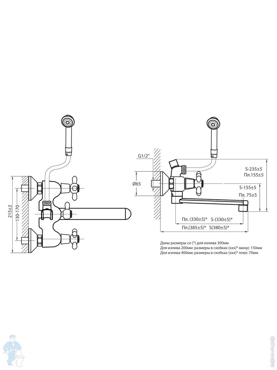 Смеситель для ванны VARION VARIOFIN ПАРМА 2022 18 2 керам.перекл., керам. кранб.,круглый излив 300ммКод: 171200