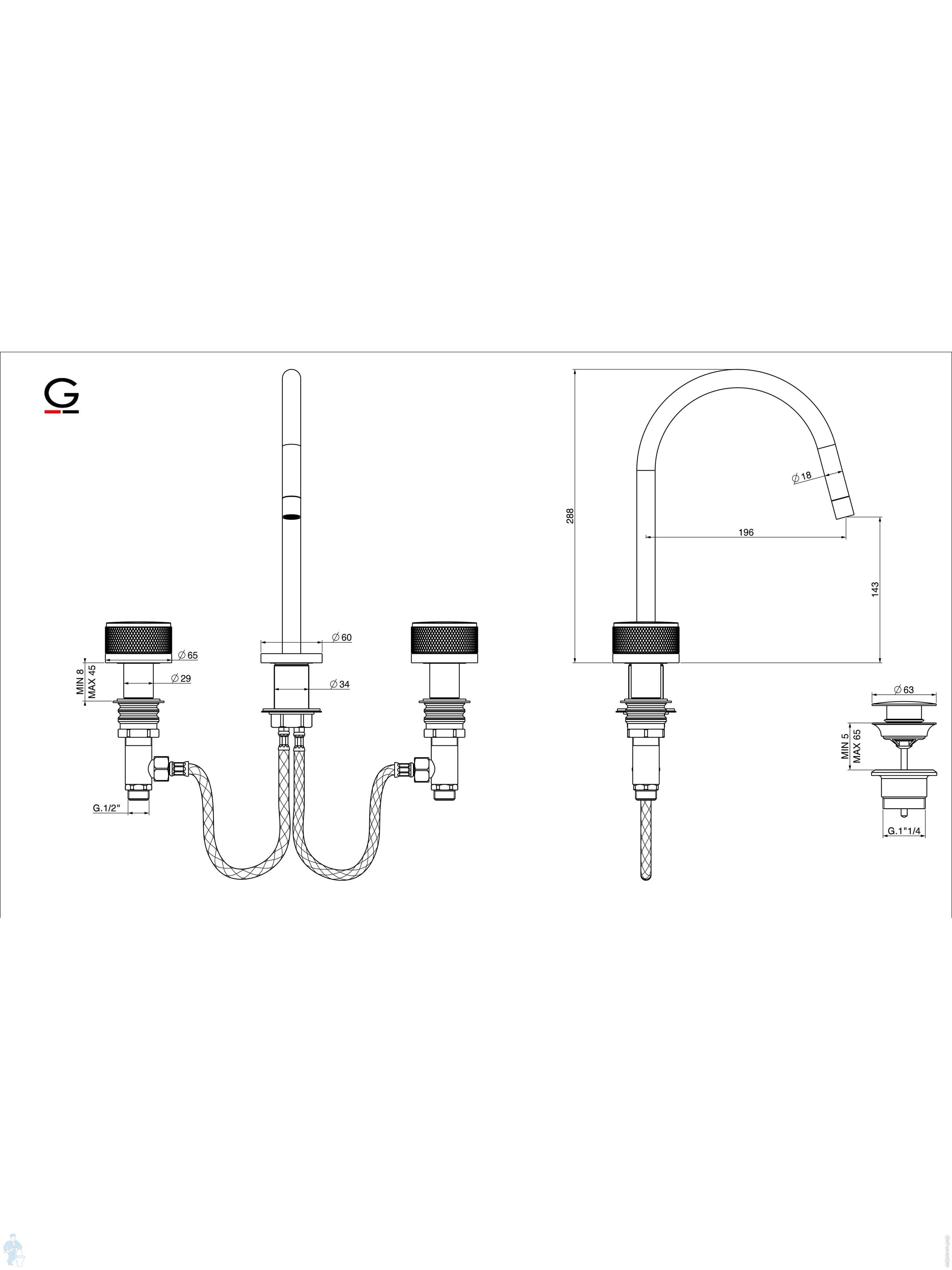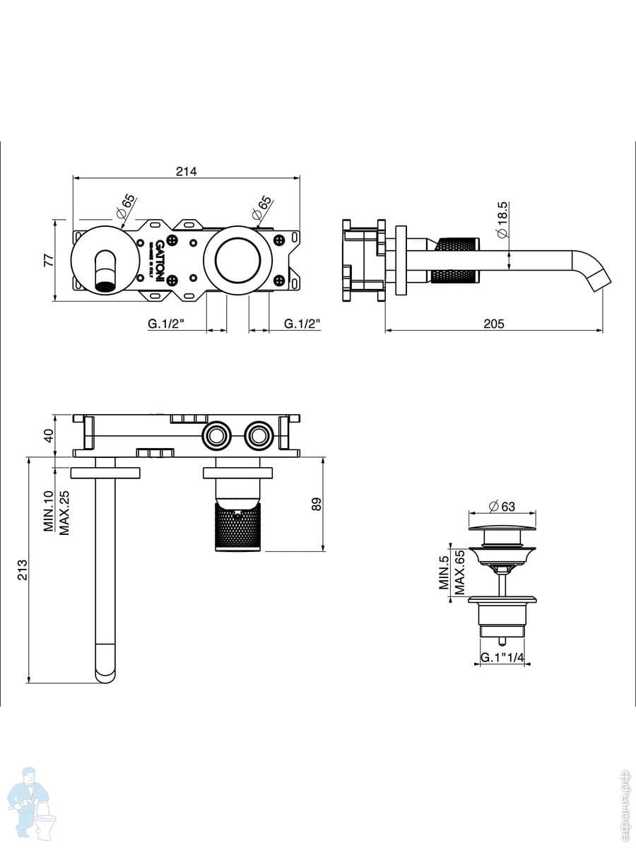Смеситель GATTONI MD для раковины, ручки San Giulio, встраиваемый, с донным клапаном, хром MD160/23CКод: 351771