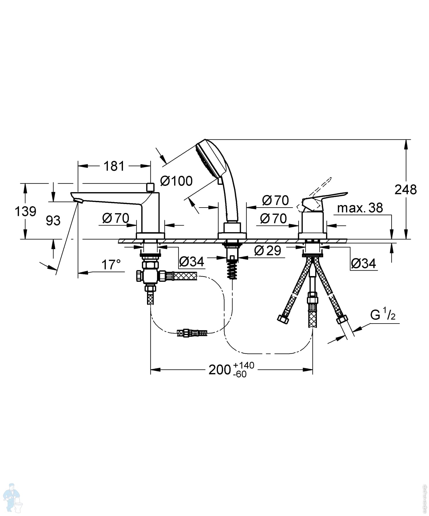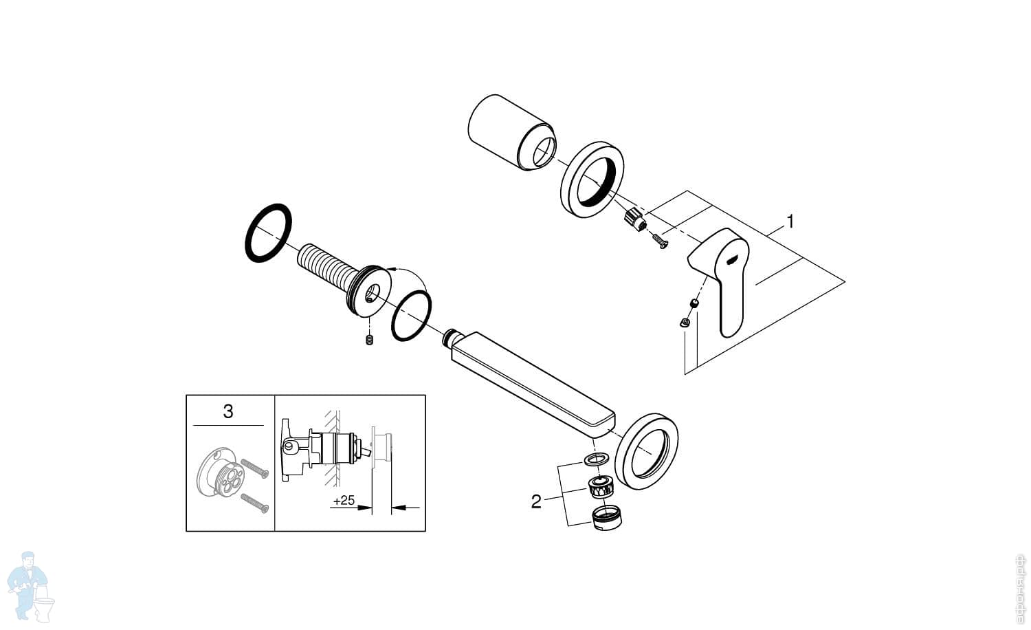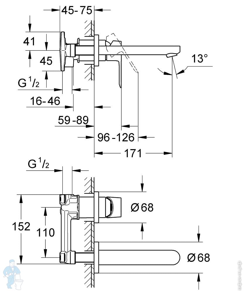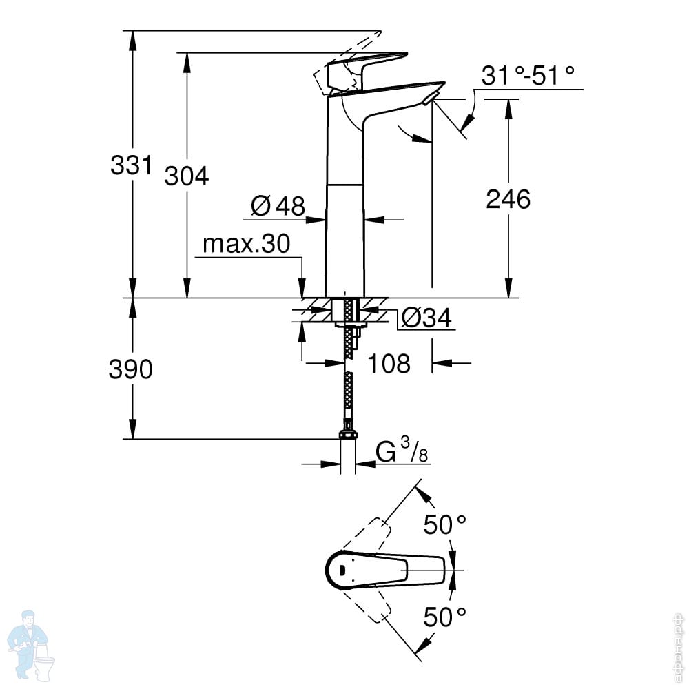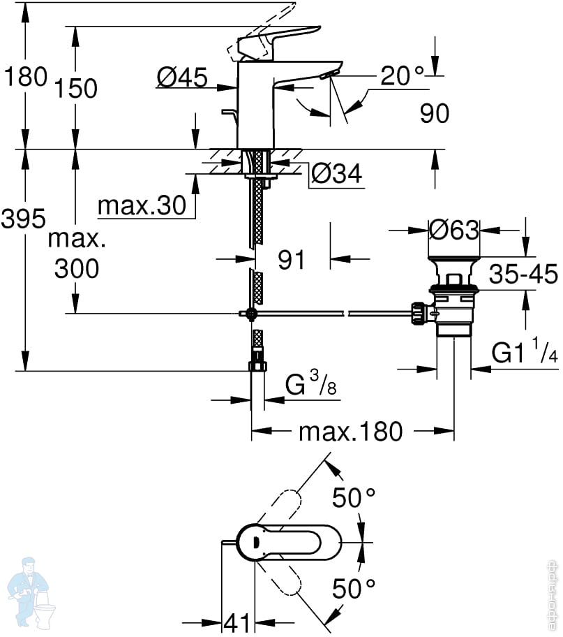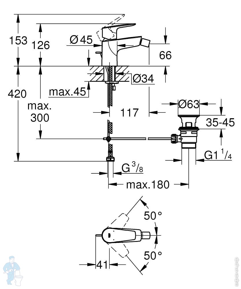 Смеситель для раковины Grohe BauEdge 20474000 встраиваемый, однозахватный, на 2 отверстия, цвет:хромКод: 316304