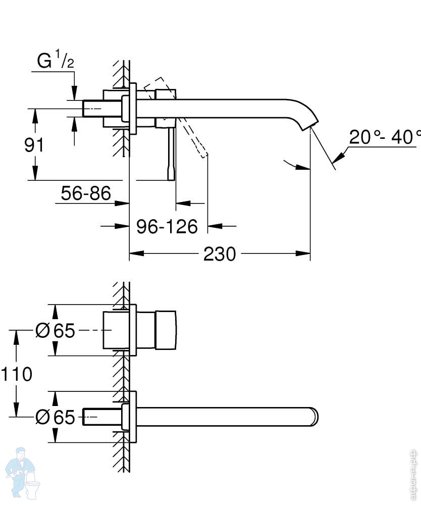 Смеситель для ванны Grohe Essence внешняя часть,однозахватный,без излива,2 потребителя,хром 24058001Код: 316339