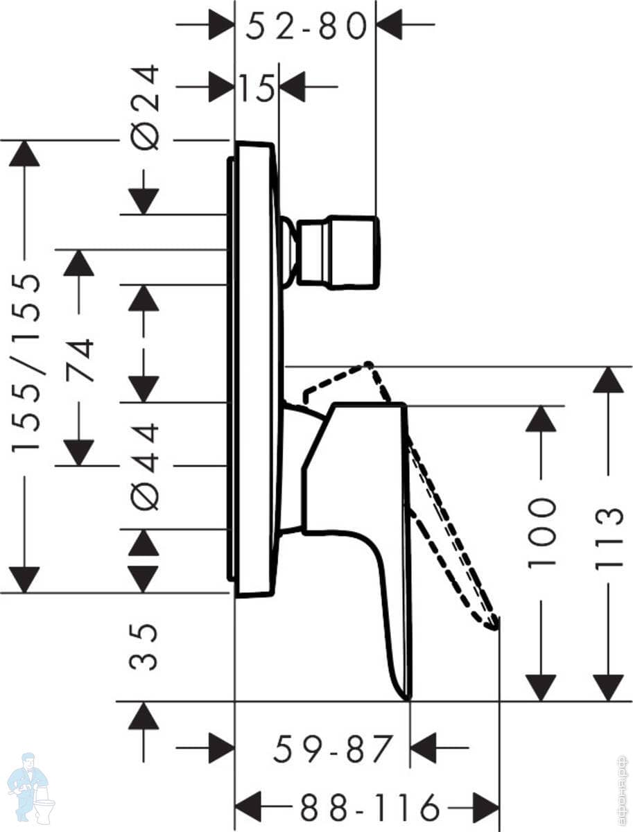 Смеситель Hansgrohe Logis 71405000 для ванны/душа, встраиваемый, однозахватный, наружная часть, хромКод: 51459