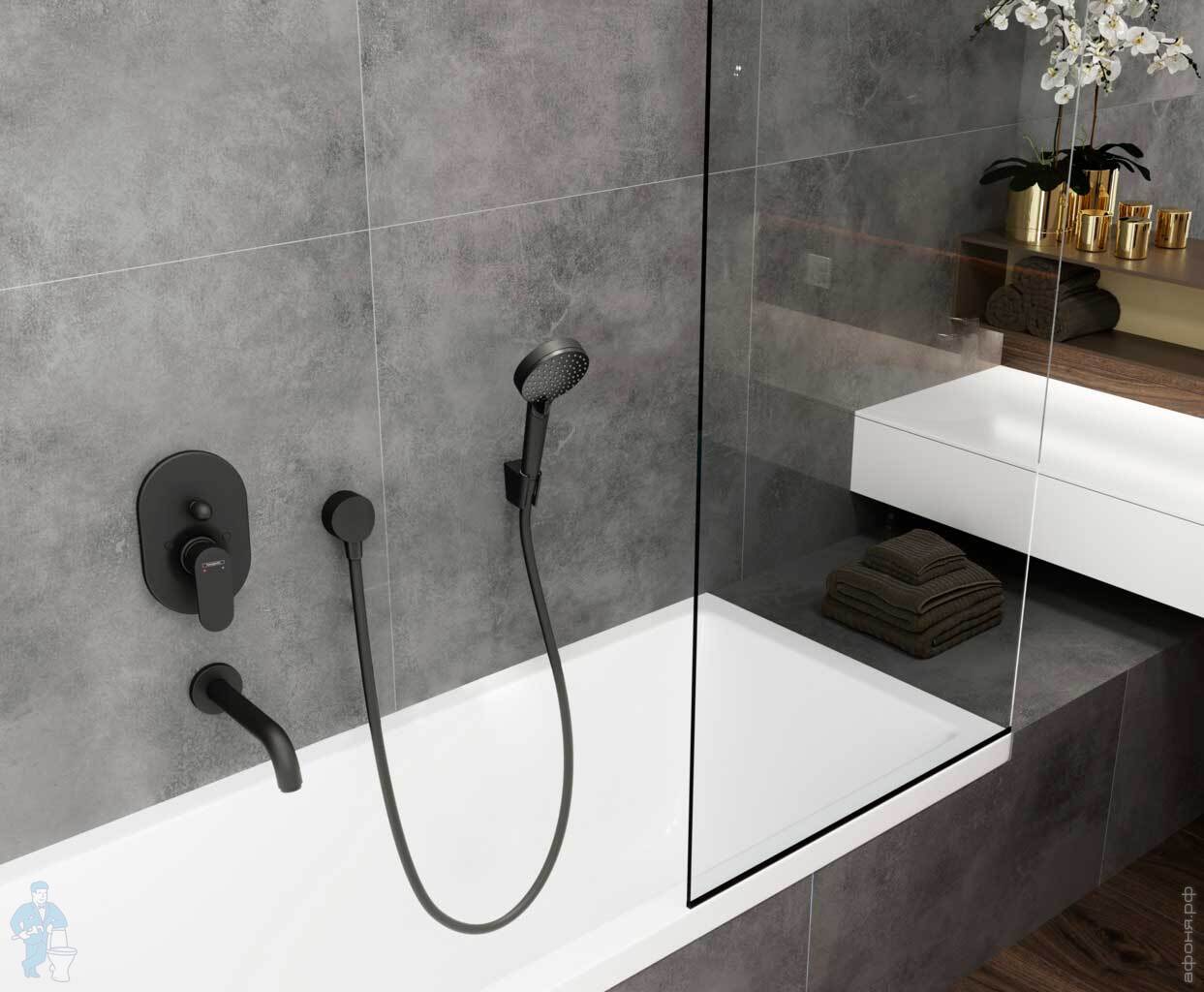 Смеситель Hansgrohe Ecostat Square встраиваемый, термостат, 2 потребителя, шлиф черный хром 15714340Код: 154103