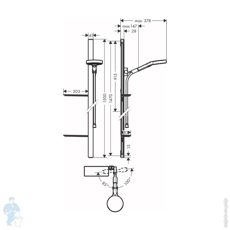 Душевой набор Hansgrohe Raindance Select S лейка 125мм 3 вида струи, штанга90, шланг, мыльница 27667Код: 132413