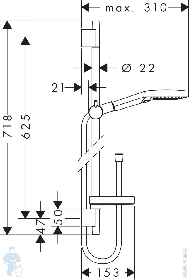 Душевой набор Hansgrohe Crometta Vario (руч.душ, шланг, штанга 65 см с мыльницей) хром/бел. 26553400Код: 77489