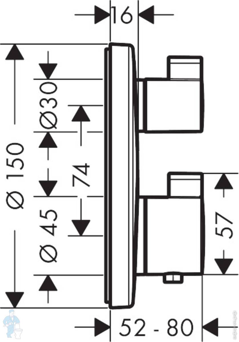 Смеситель Hansgrohe Ecostat Square встраиваемый, термостат, 2 потребителя, шлиф черный хром 15714340Код: 154103
