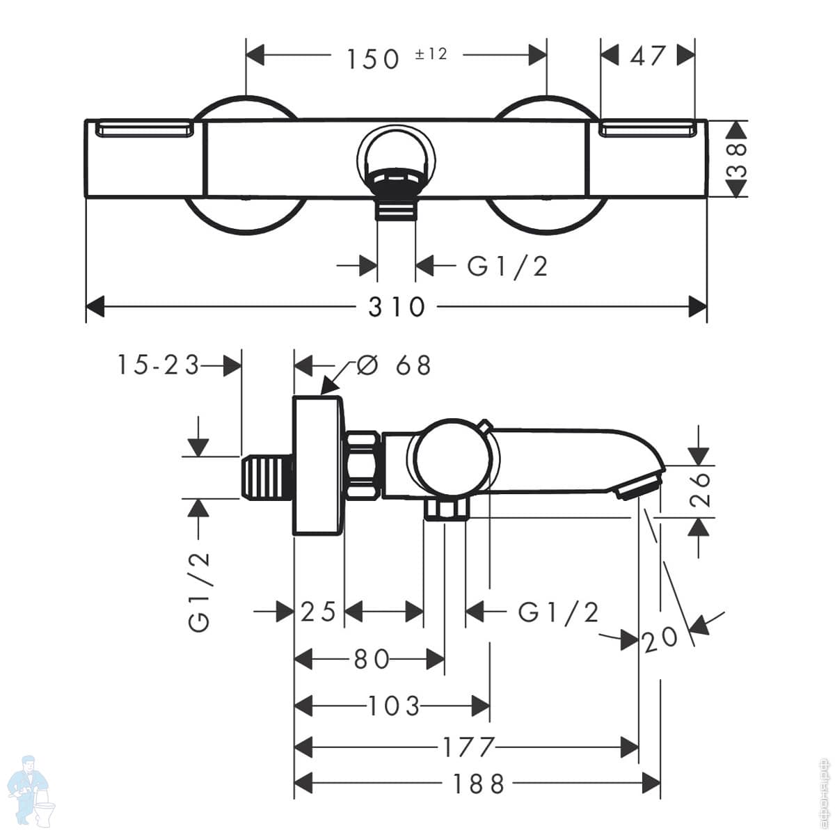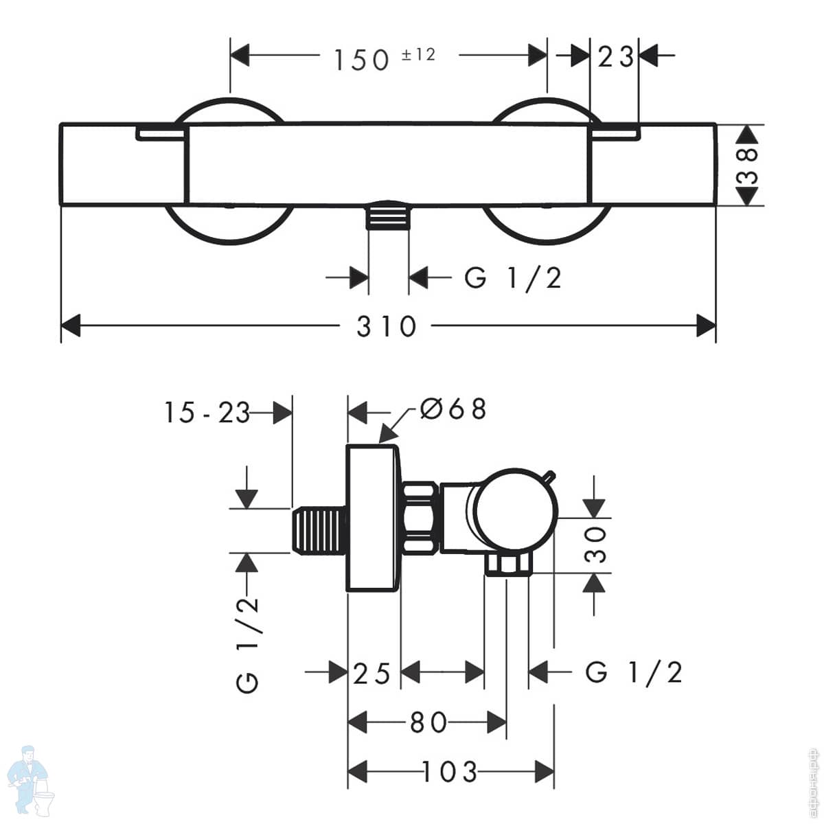 Смеситель Hansgrohe Ecostat S 15758700 термостат, с запор/перекл вентилем, внеш.часть, белый матовыйКод: 179145