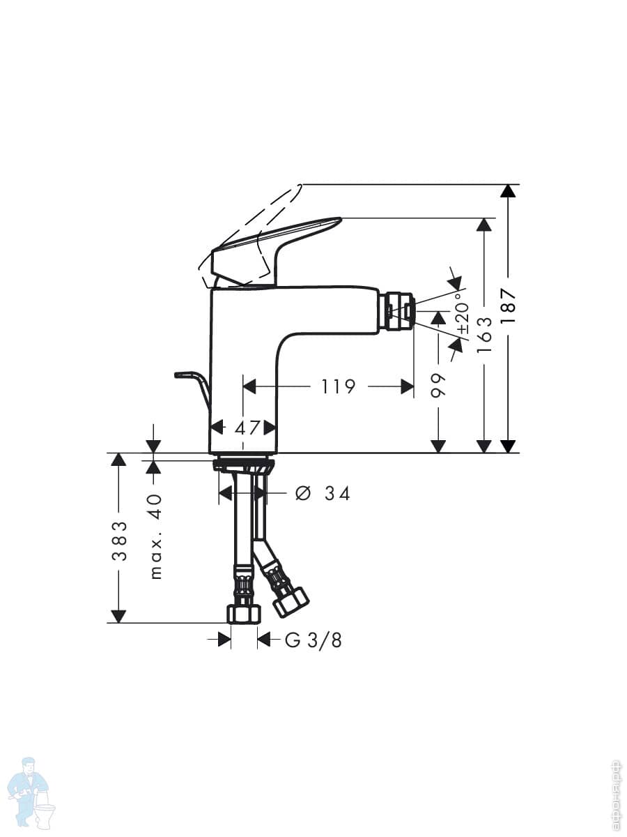 Смеситель Hansgrohe Logis 71131 для умывальника однозахватный, поворотный излив, без донного клапанаКод: 51474