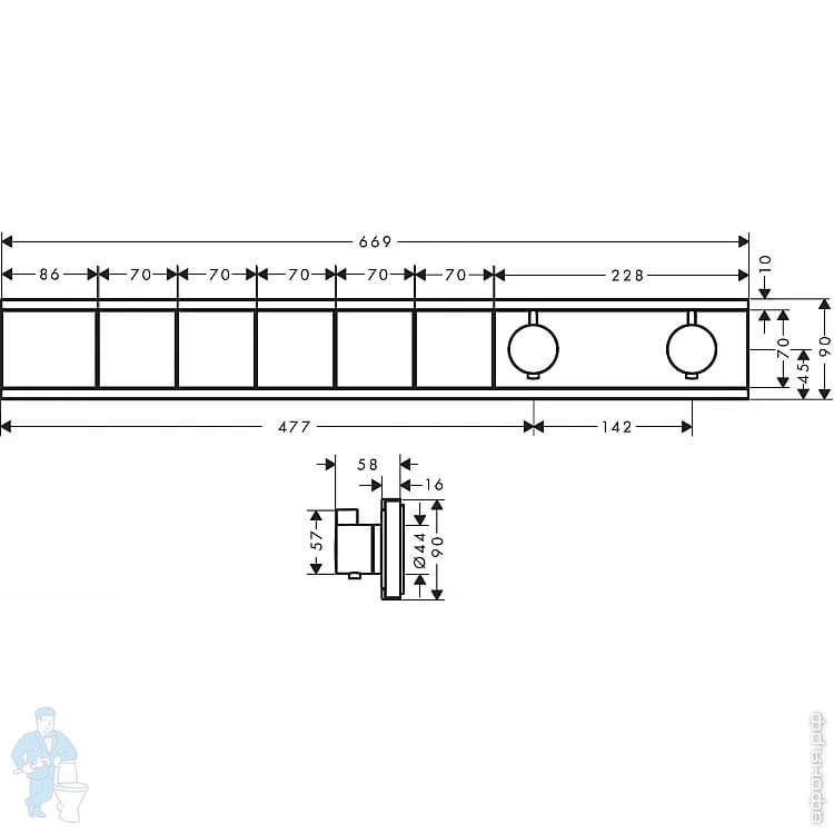 Смеситель для душа Hansgrohe RainSelect встраиваемый, термостат, с 5 кнопками,белый матовый 15384700Код: 152692
