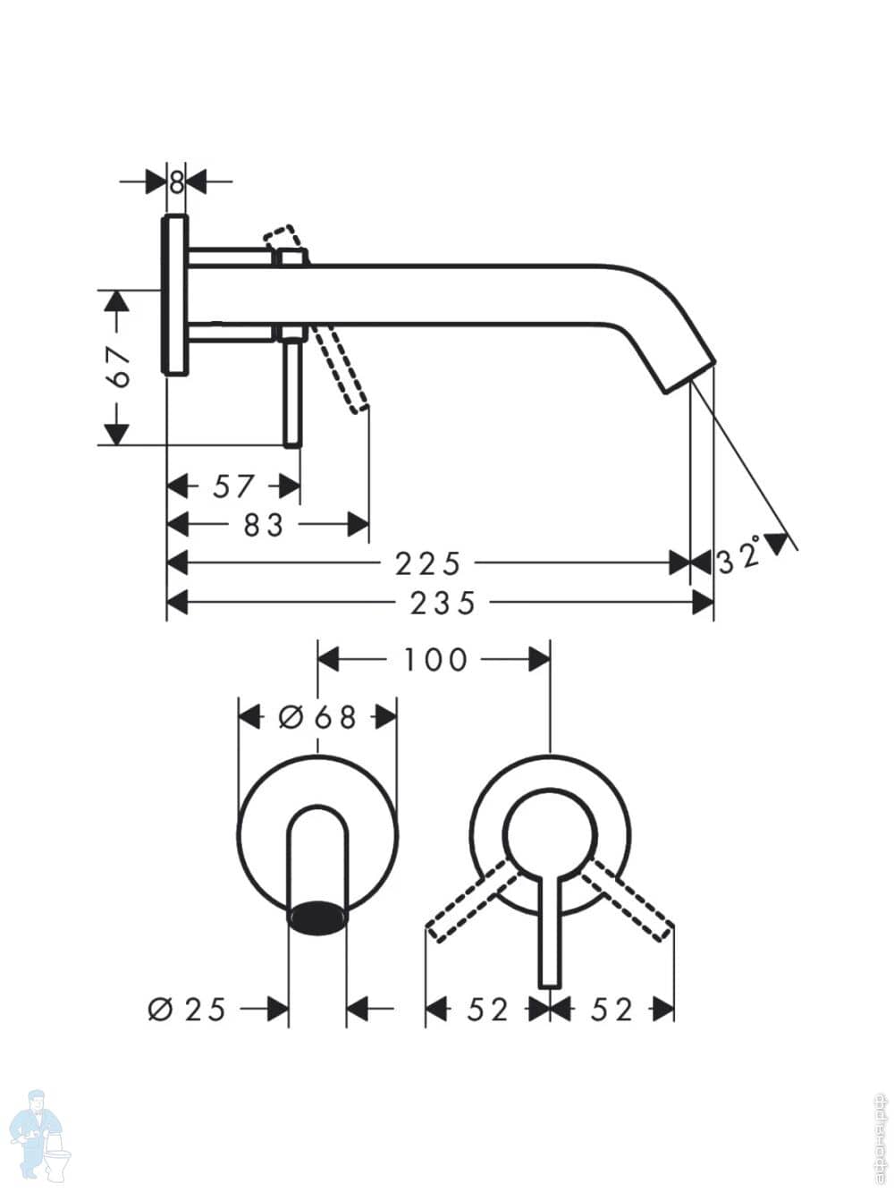 Смеситель Hansgrohe Tecturis S для раковины встраив.,однозахват.,излив 165 см,белый матовый 73350700Код: 331000