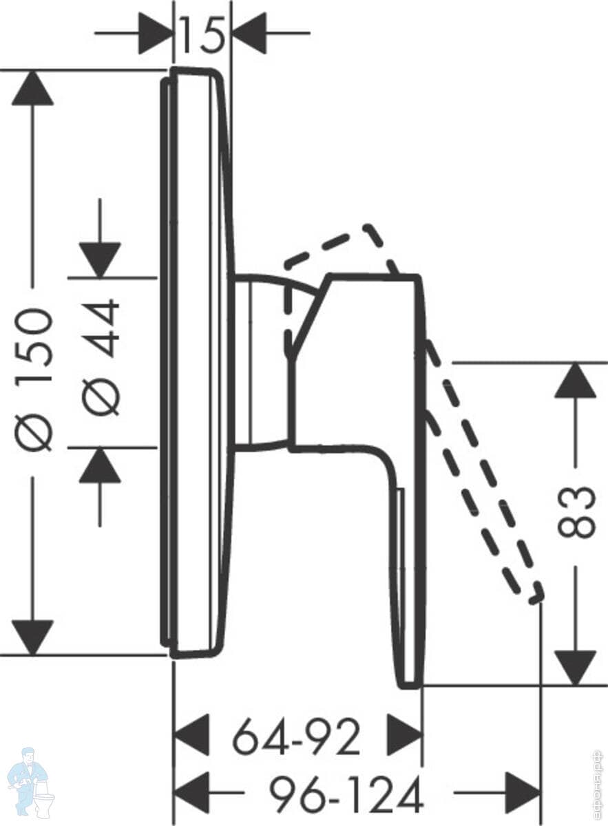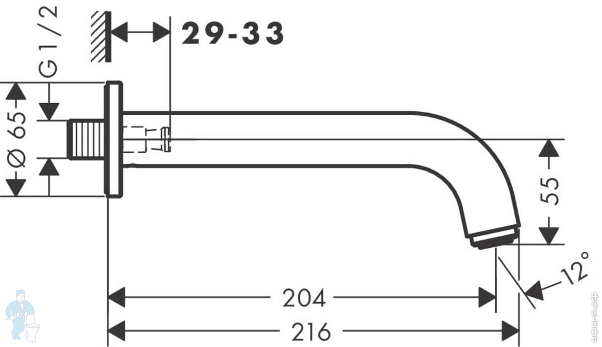 Смеситель для ванны/душа Hansgrohe Vernis Blend 71440670 настенный, однозахв., кор. излив, черн. матКод: 206570