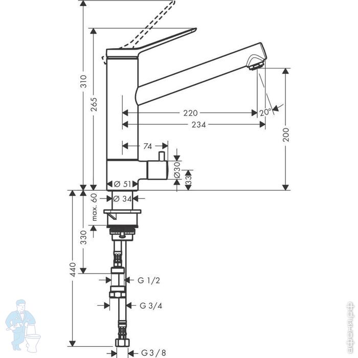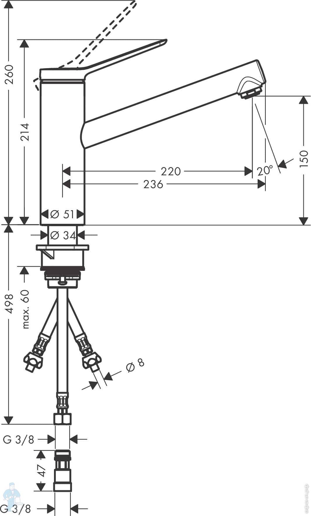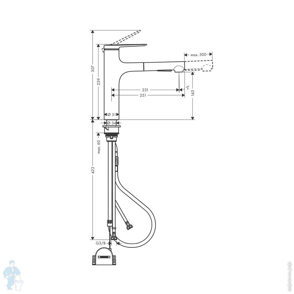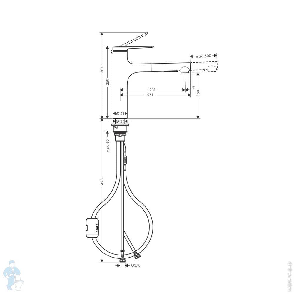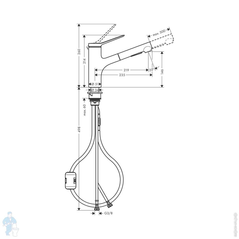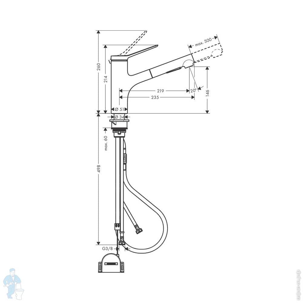 Смеситель Hansgrohe Zesis M33 2jet для кухни 160мм однорычажный, вытяжной душ, матов.черный 74801670Код: 232910