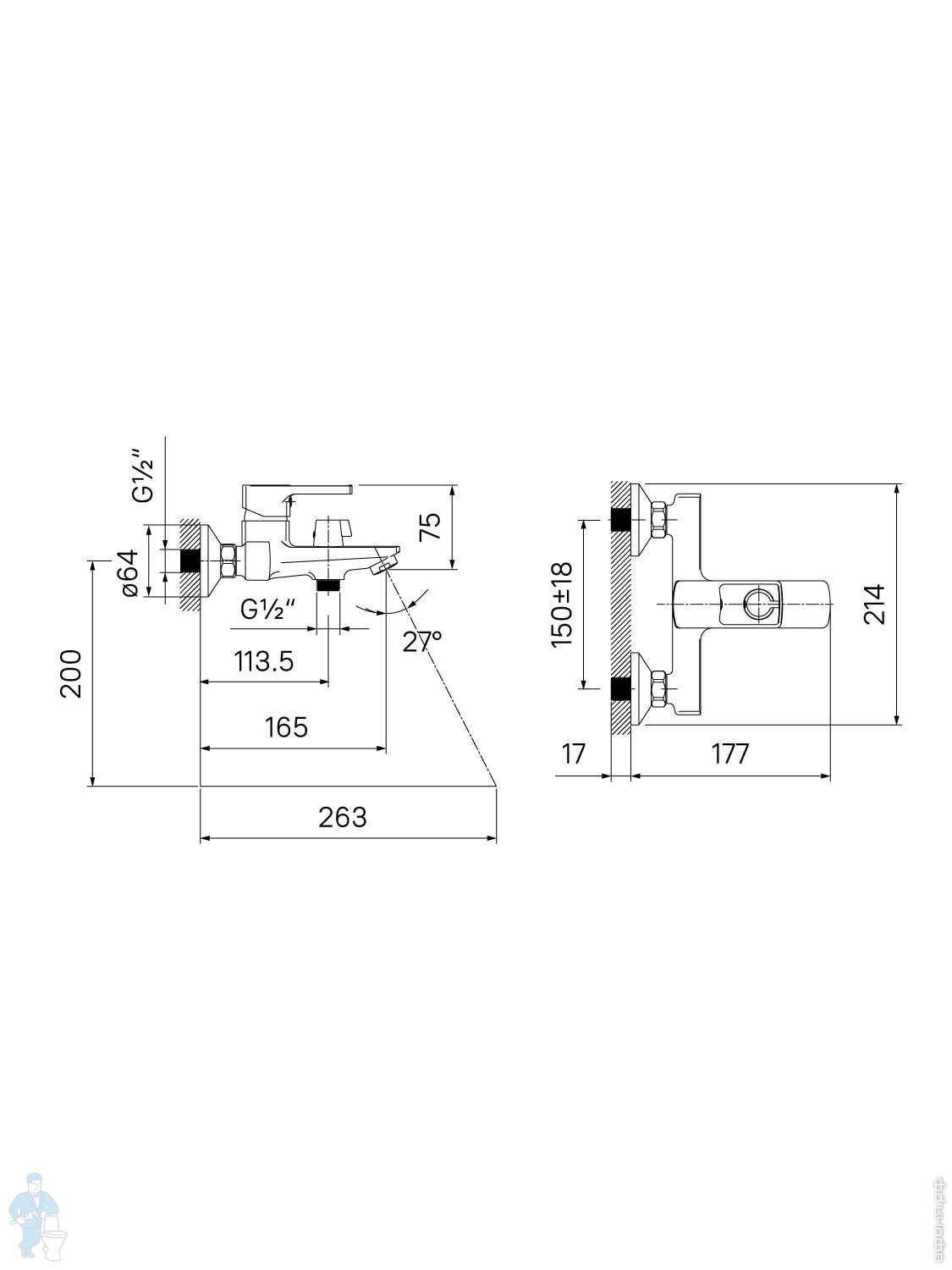 Смеситель для ванны/душа IDDIS Bild настенный, однозахватный, короткий излив, цвет:хром BILSB00i02WAКод: 176640