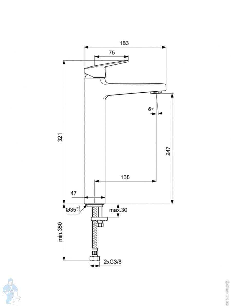 Смеситель для раковины Ideal Standard CERAPLAN BD236AA однозахватный, высокий излив 247мм, цвет:хромКод: 276582