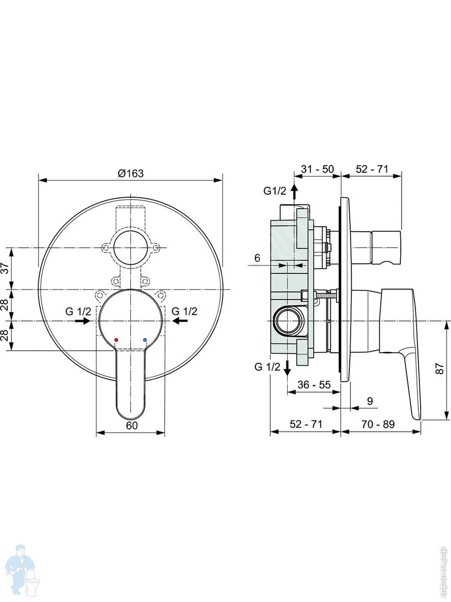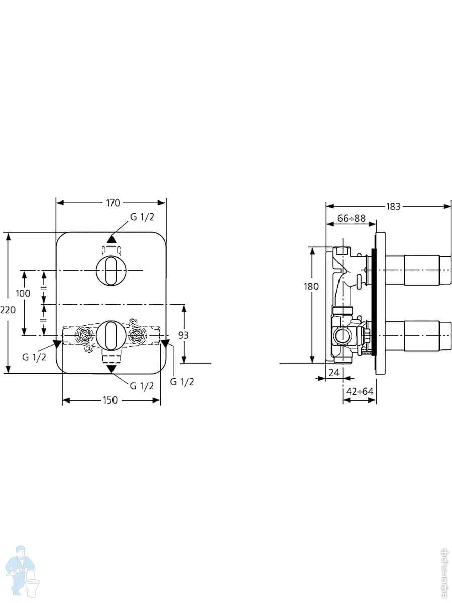 Смеситель для ванны/душа Ideal Standard MELANGE A4719AA встраиваемый,комплект для настенного монтажаКод: 26297