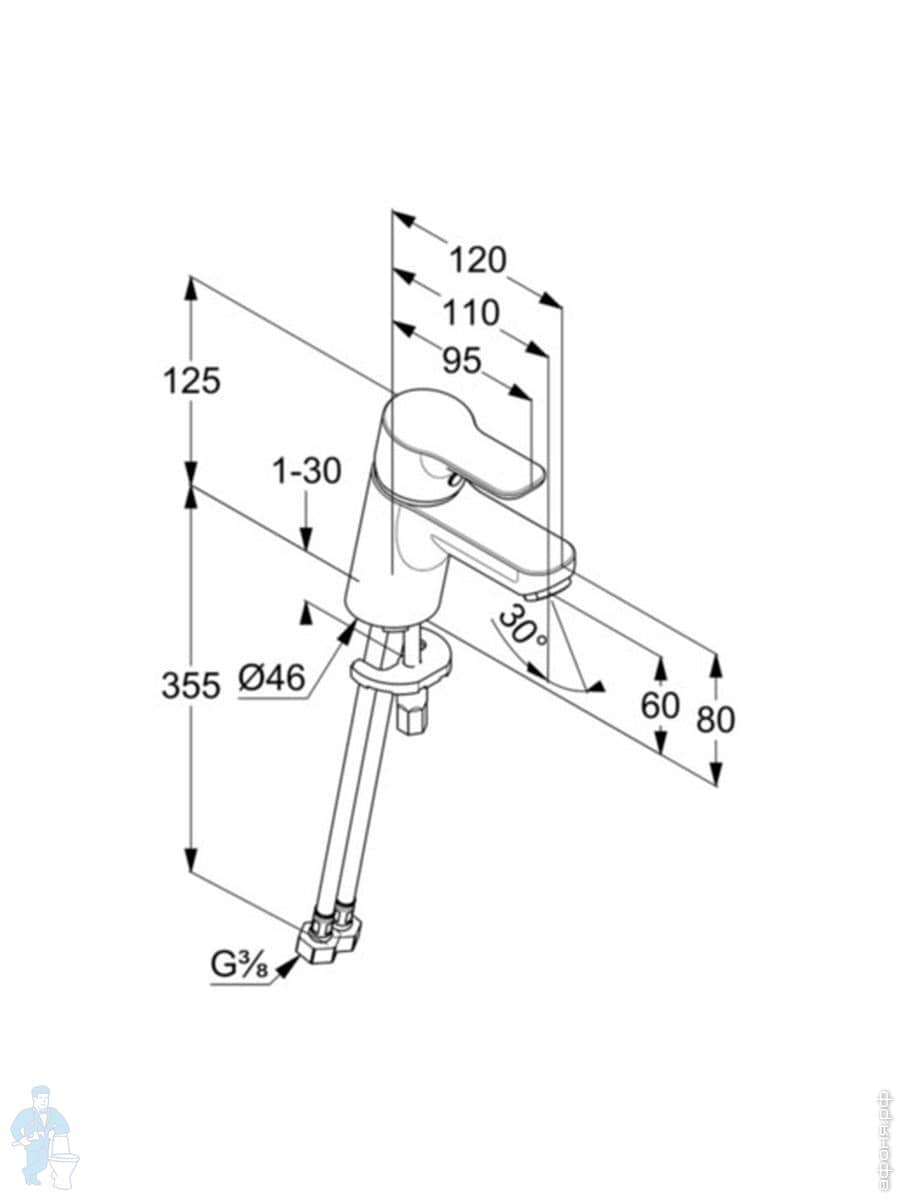 Смеситель KLUDI PURE&EASY XL для умывальника 100, однозахватный, без донного клапана, хром 372920565Код: 137928