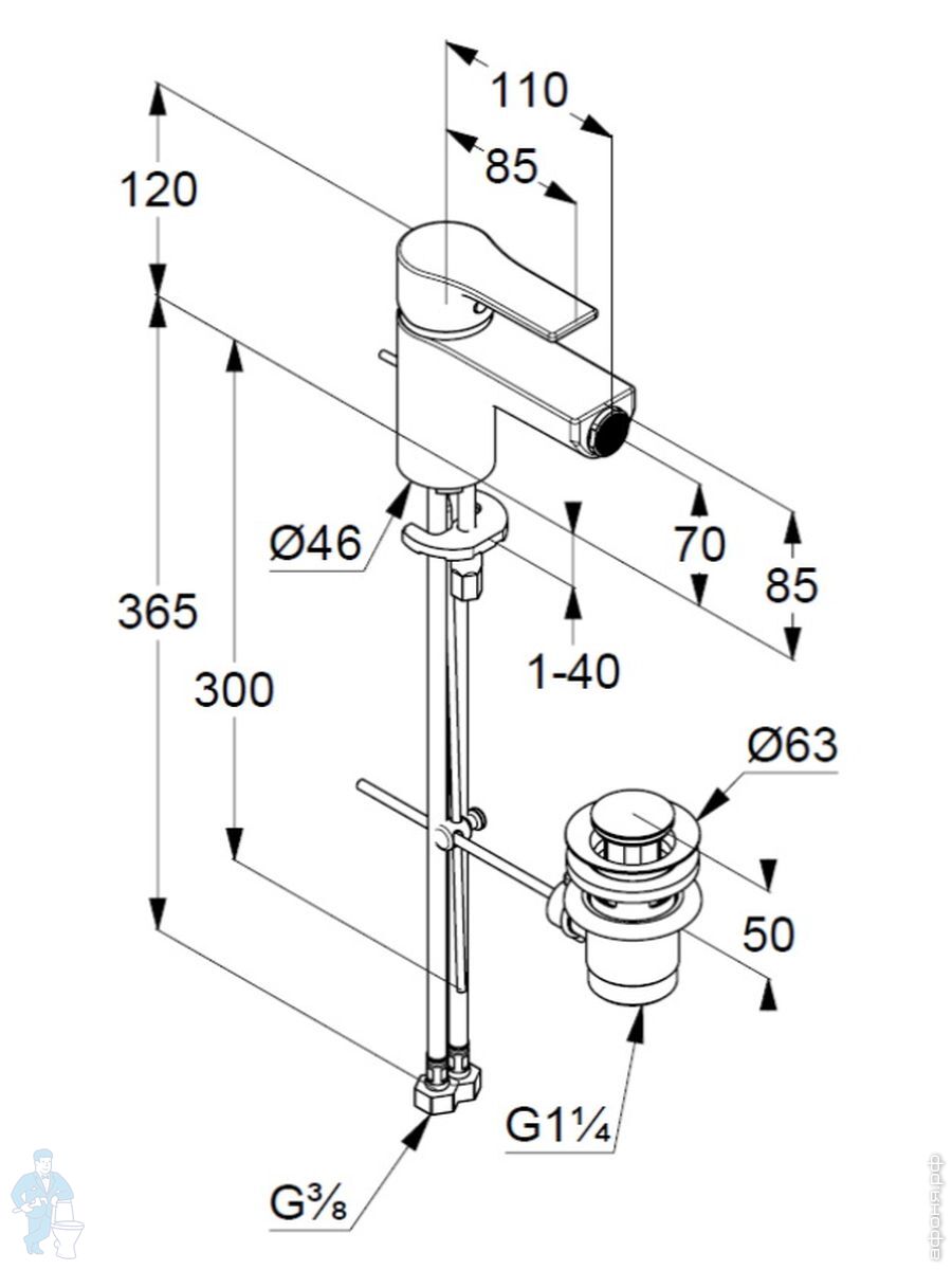 Смеситель KLUDI ZENTA SL для умывальника, однозахватный, с донным клапаном, черный матовый 482633965Код: 296692
