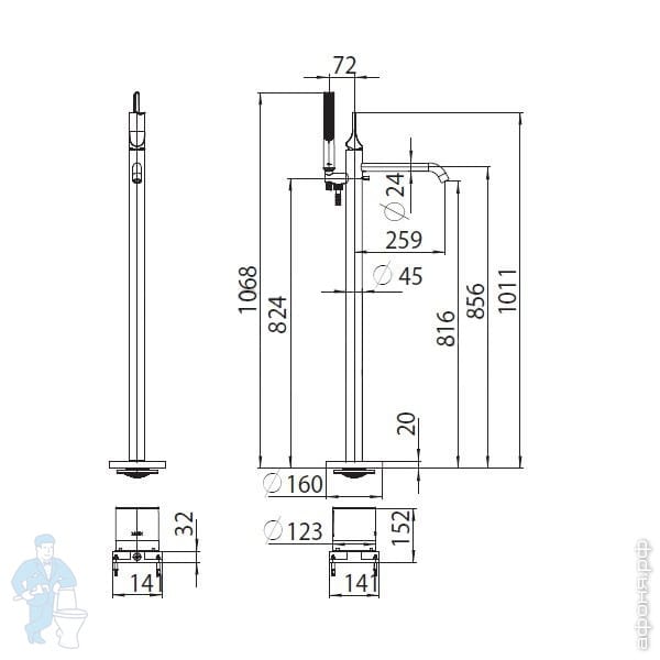 Смеситель для ванны Bossini Apice Z00581043 напольный, однозахватный, с душ. гарнитуром, сат. золотоКод: 312342