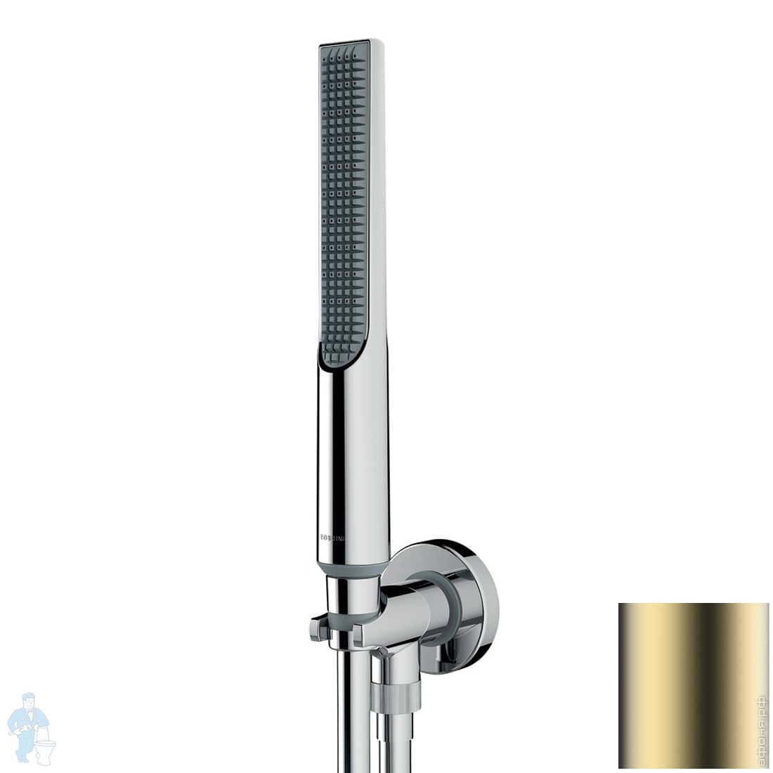 Душевой комплект Bossini Apice CE3001C021 лейка 140мм, шланг, подключение с держателем, сатин.золотоКод: 312350