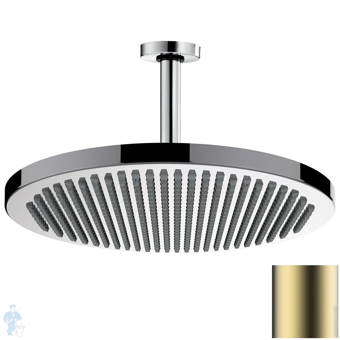 Верхний душ Bossini Apice SPOT HH1000043 100мм, настенный поворот. кронштейн, Easy-Clean, сат.золотоКод: 312360