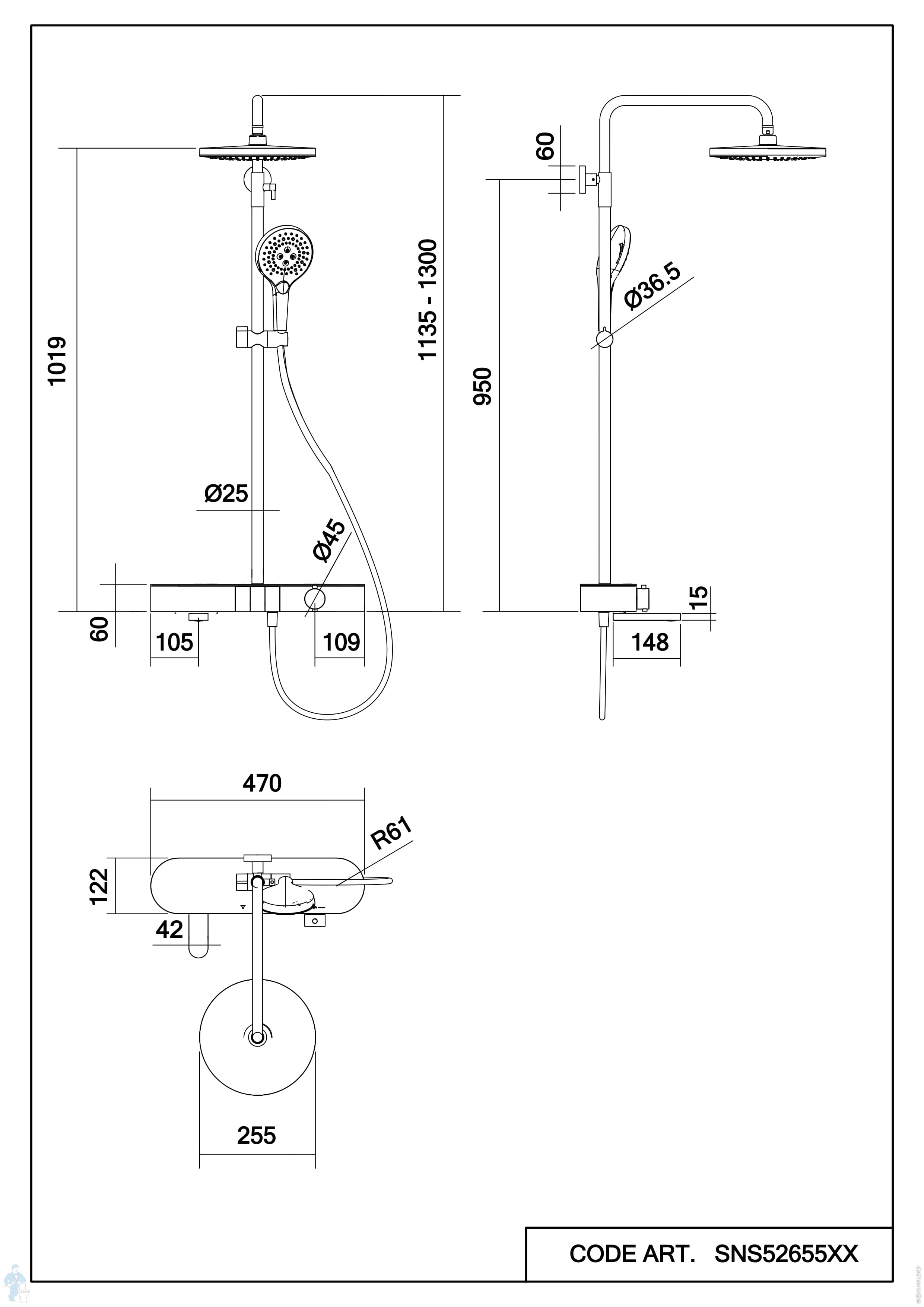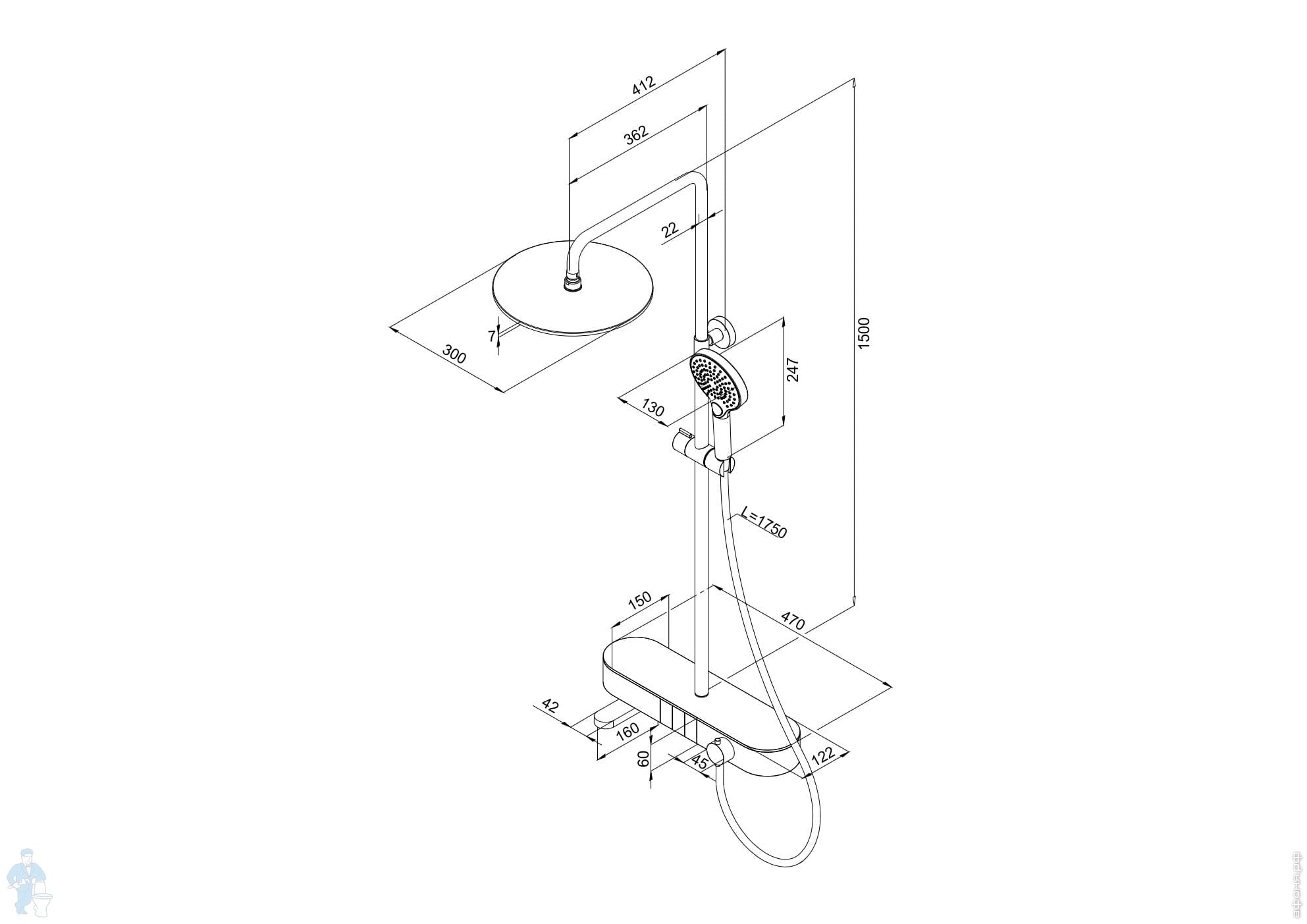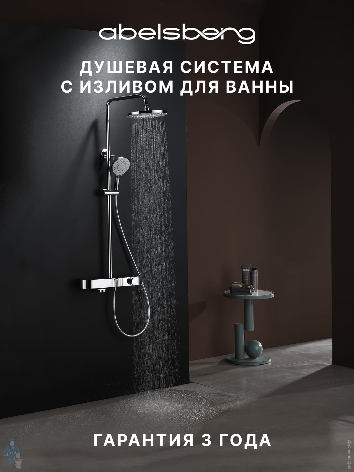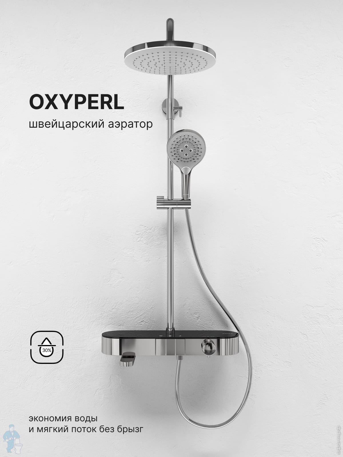 Душевая система Abelsberg Intensa SNS52655CH с термостатом и полкой для ванны и душа, глянцевый хромКод: 996208