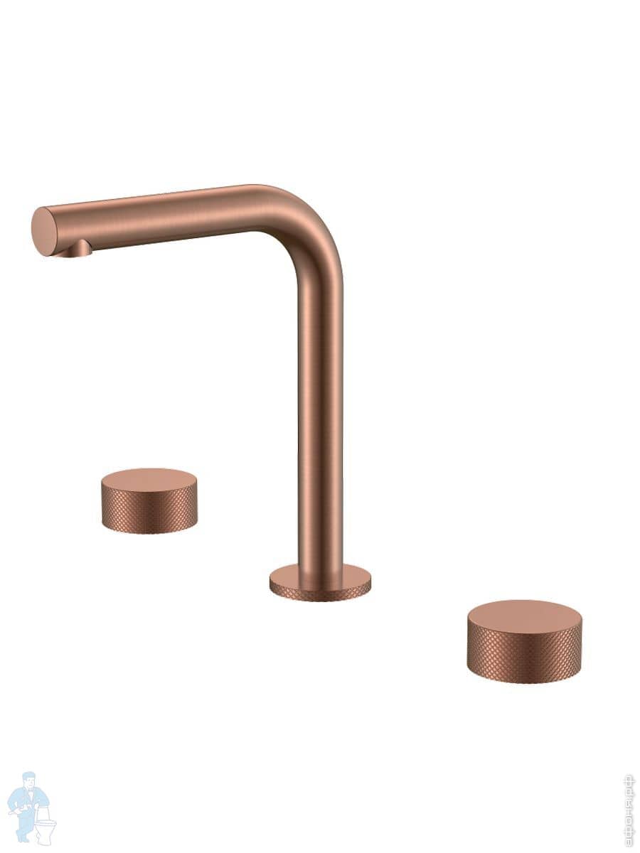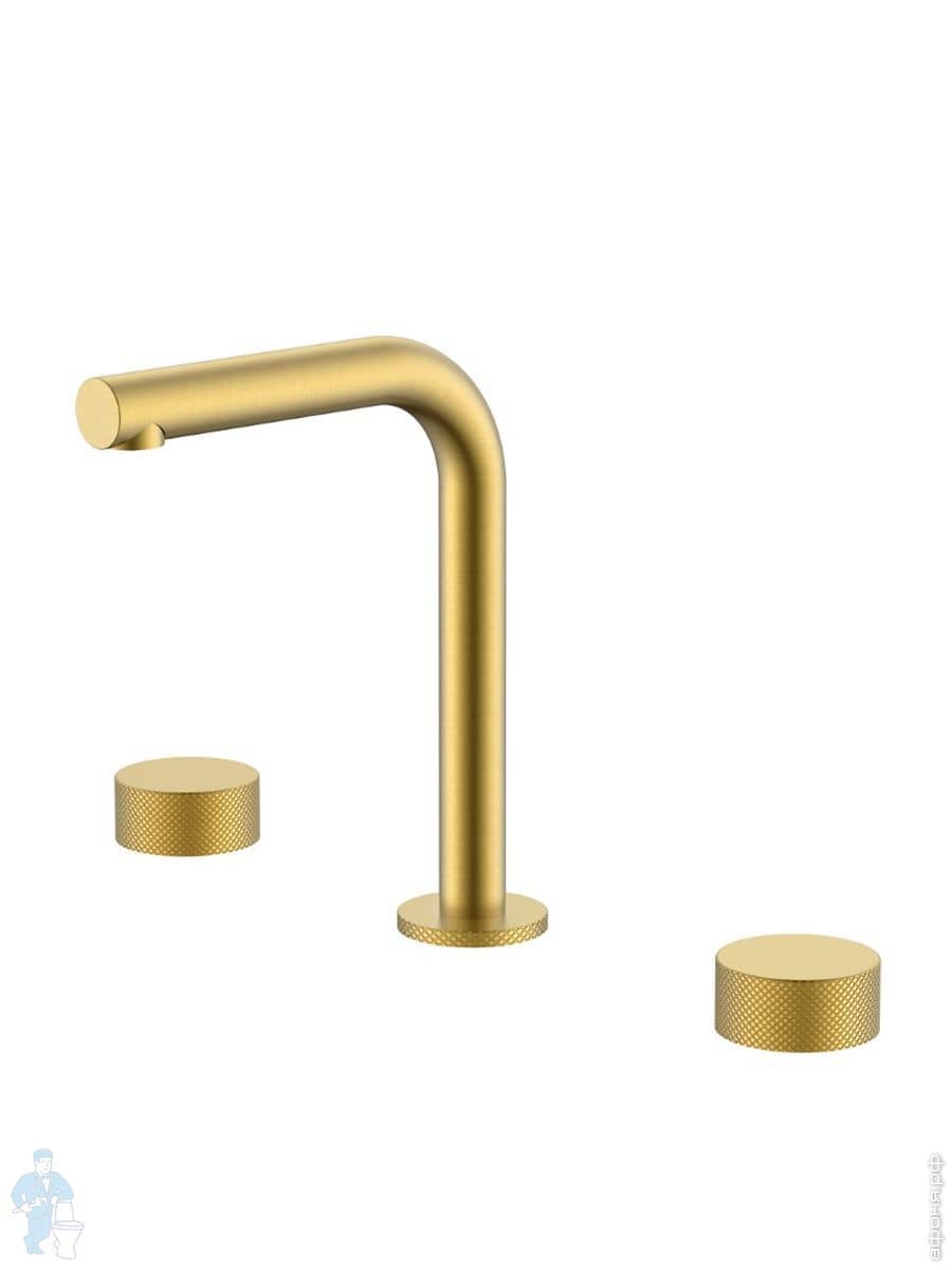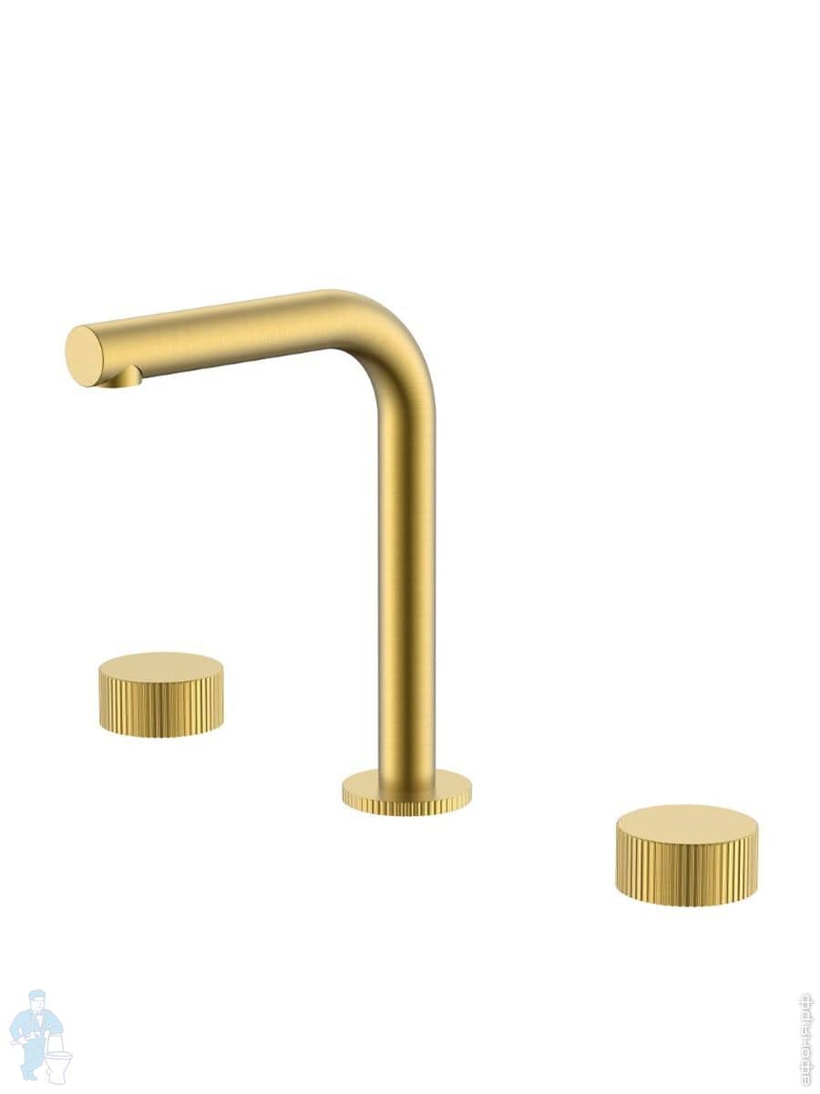 Смеситель Boheme Stick 152-MG.3 для раковины, на 3 отверстия, двухзахватный, ручки linea, золото матКод: 360325