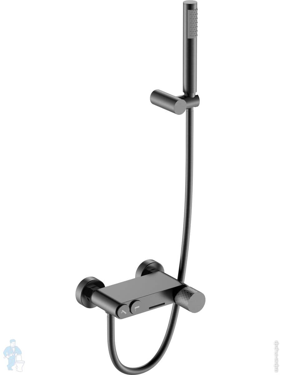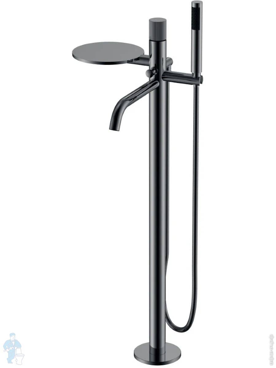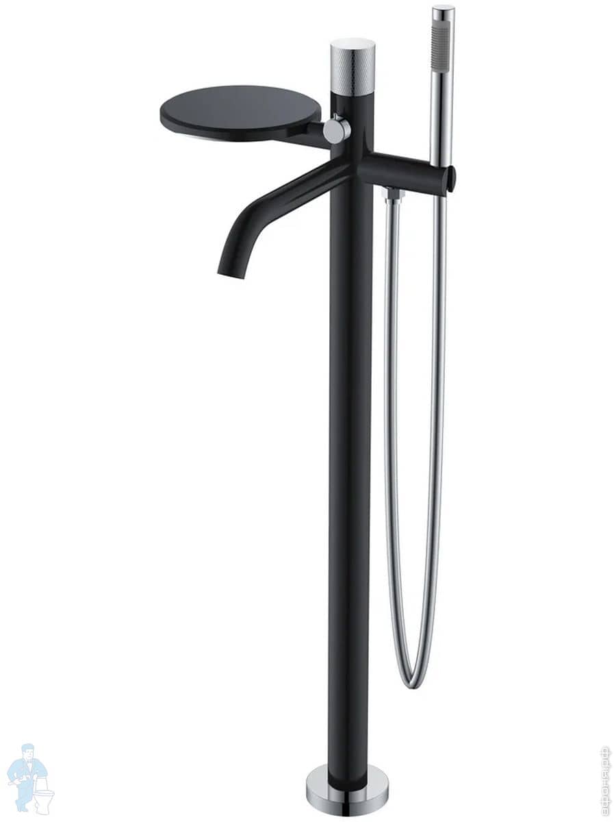Смеситель Boheme Stick 129-BCR для ванны/душа, напольный, с ручным душем, ручка:diamond, черный+хромКод: 360378