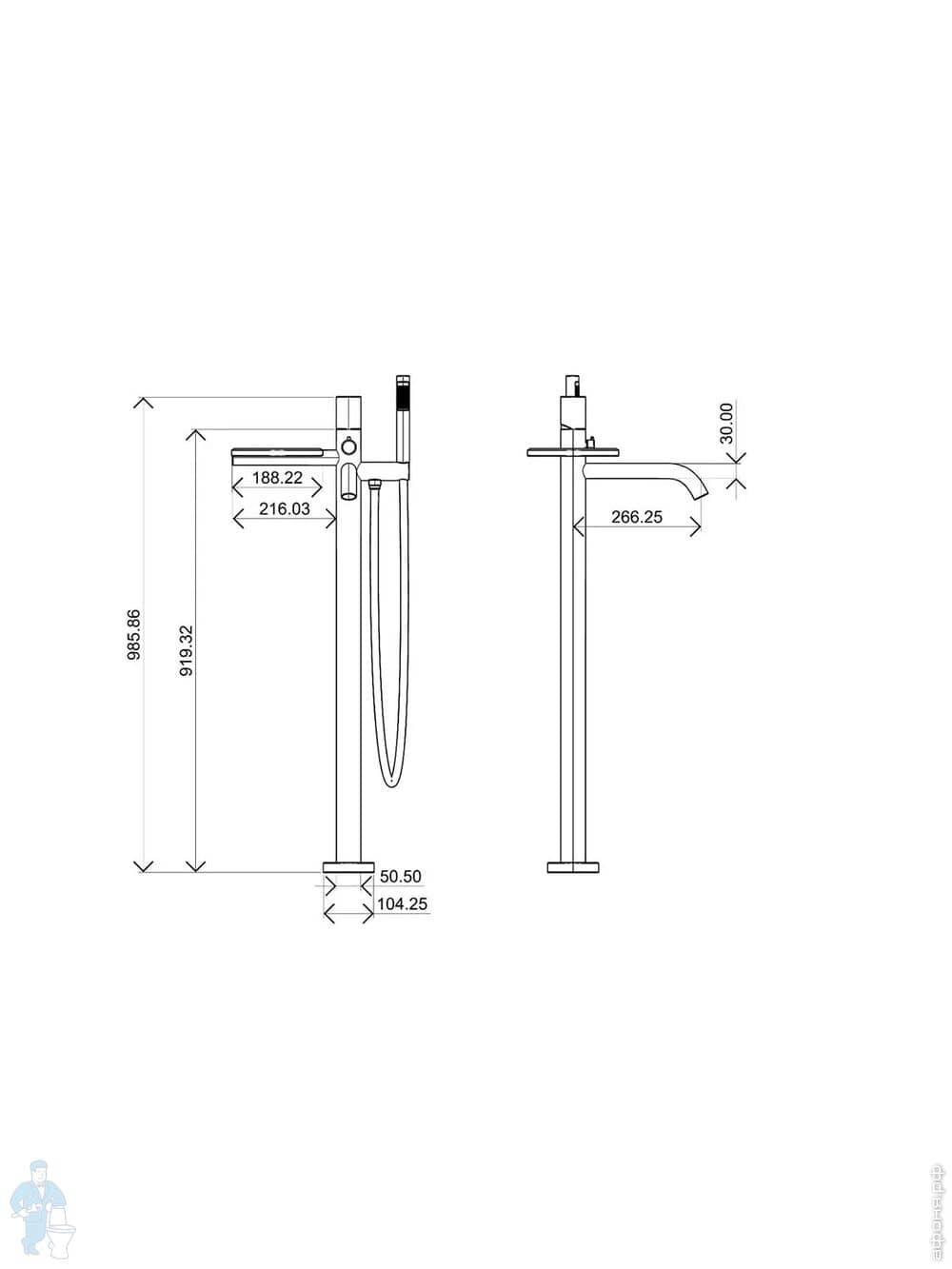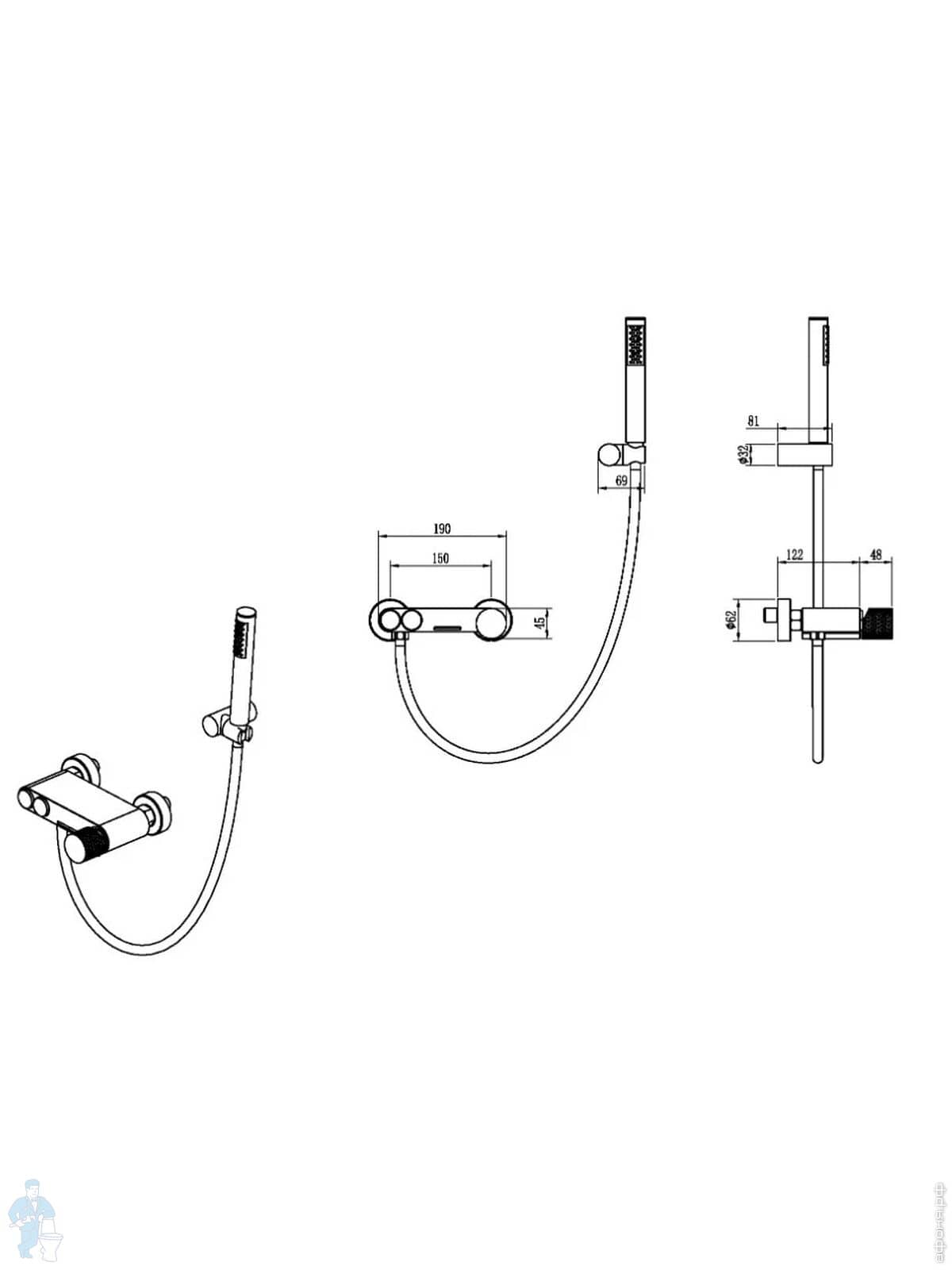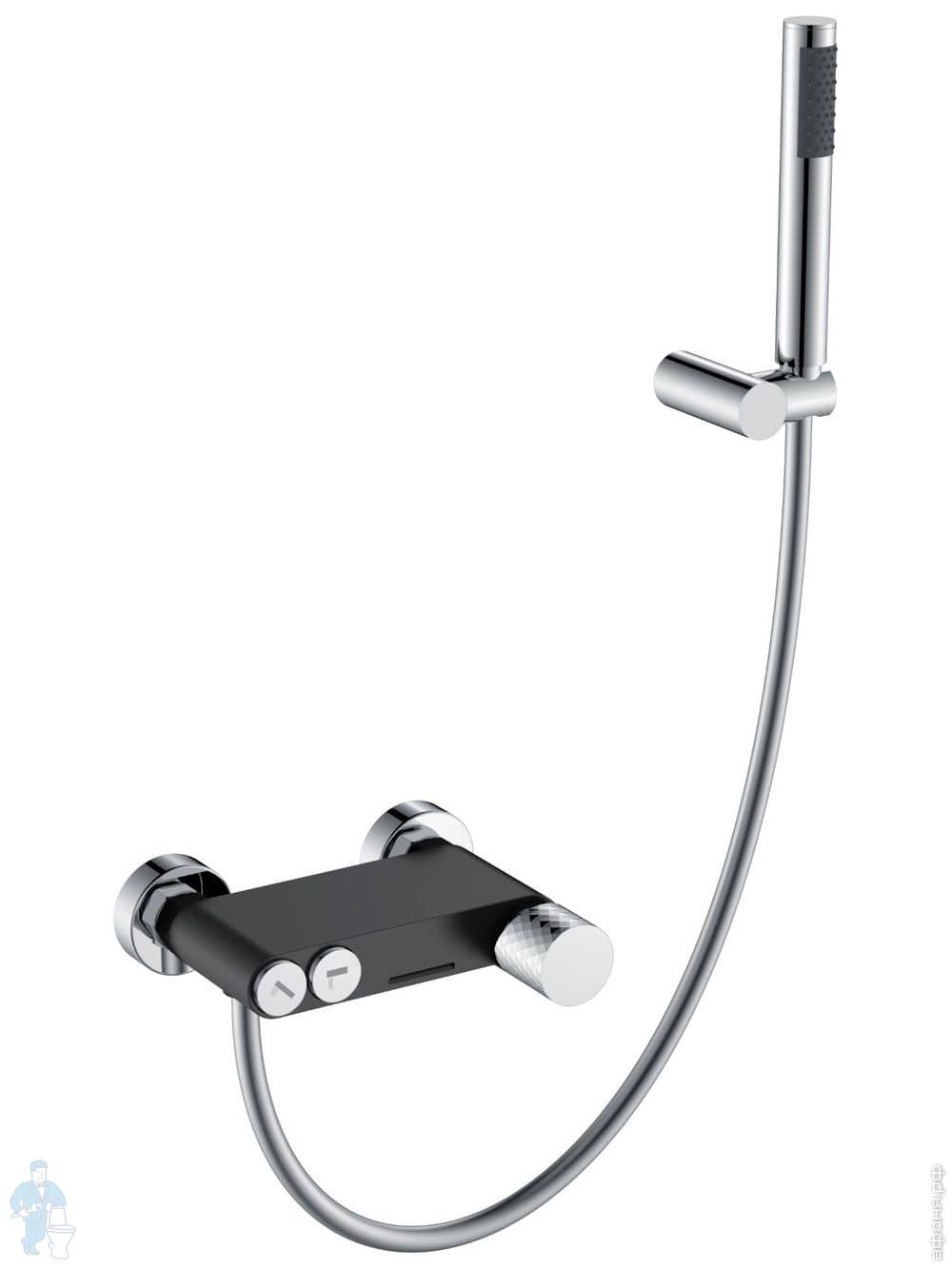 Смеситель Boheme Stick 129-BCR для ванны/душа, напольный, с ручным душем, ручка:diamond, черный+хромКод: 360378