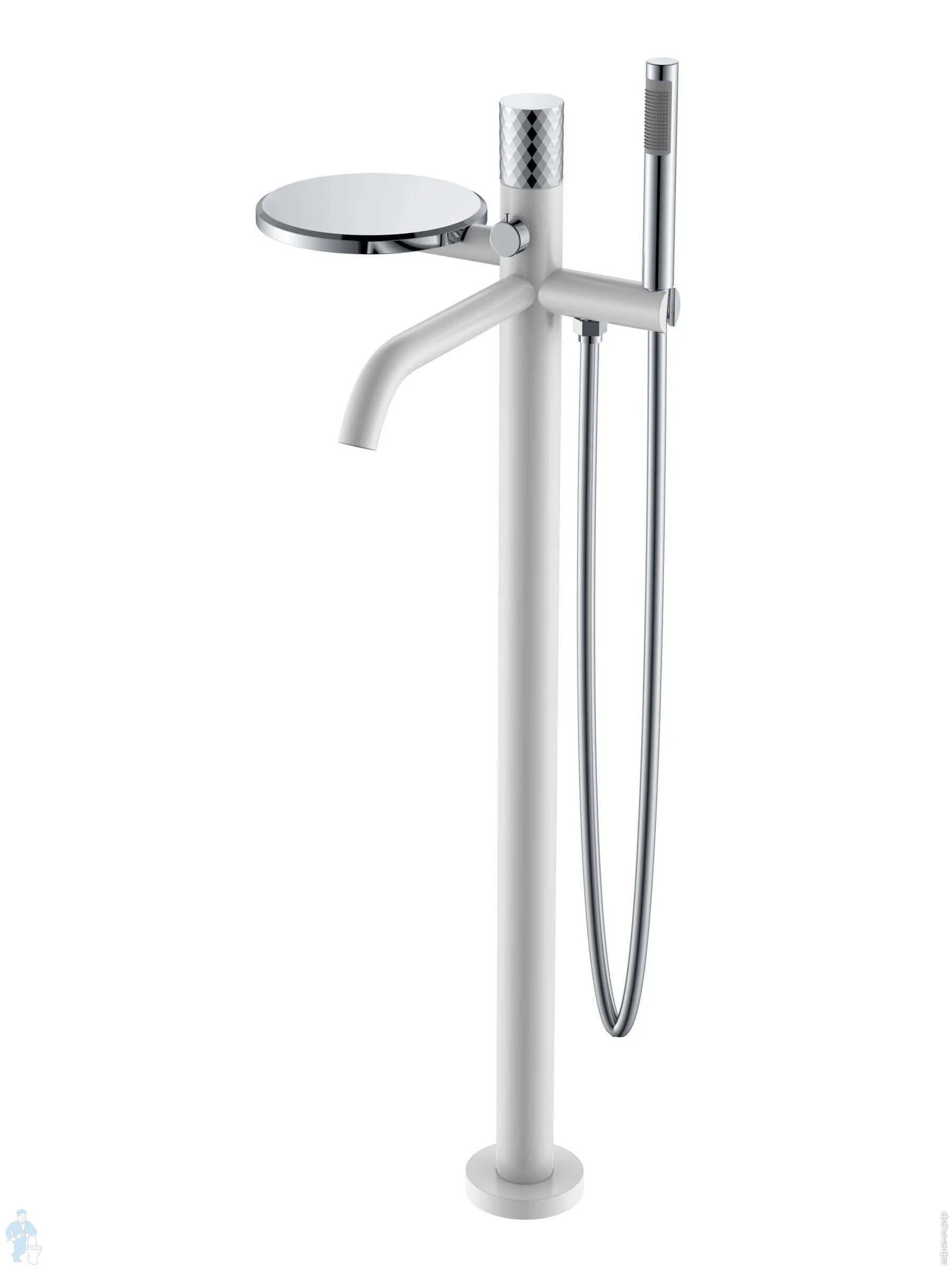 Смеситель Boheme Stick 129-WG для ванны/душа, напольный, с ручным душем, ручка:diamond, белый+золотоКод: 360387