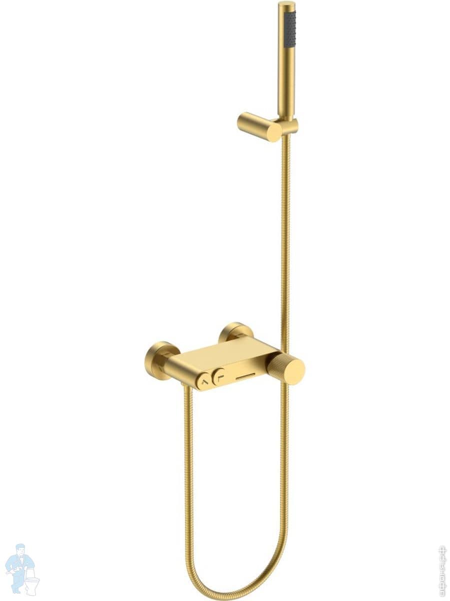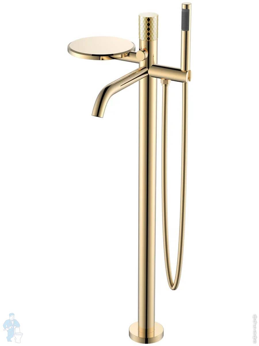 Смеситель Boheme Stick 129-BG для ванны/душа, напольный, с ручным душем, ручка:diamond,черный+золотоКод: 360379