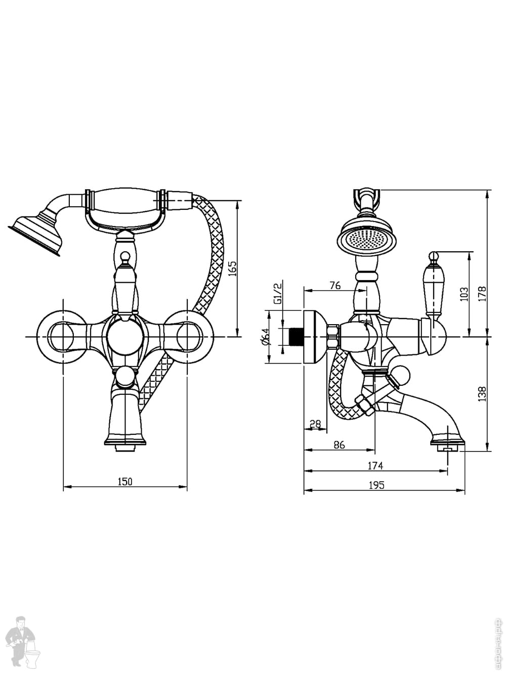 Смеситель Boheme Tradizionale Chromo 263-BLC для ванны/душа, настенный,однозахв, лейка 1 режим, хромКод: 358059