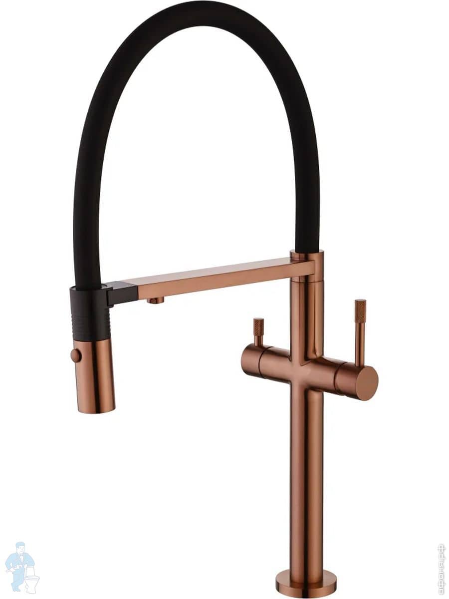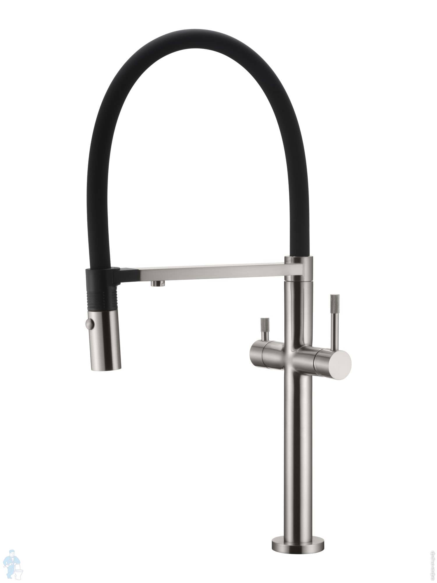 Смеситель Boheme Uno 115-NB для кухни, однозахватный, c краном для п/воды, гибкий излив, никель брашКод: 317409