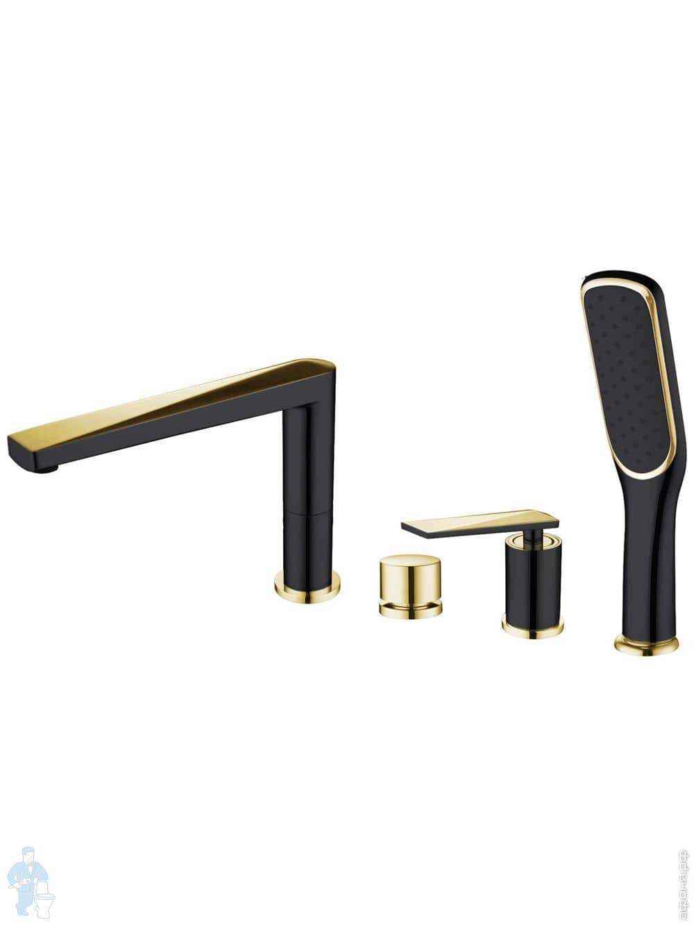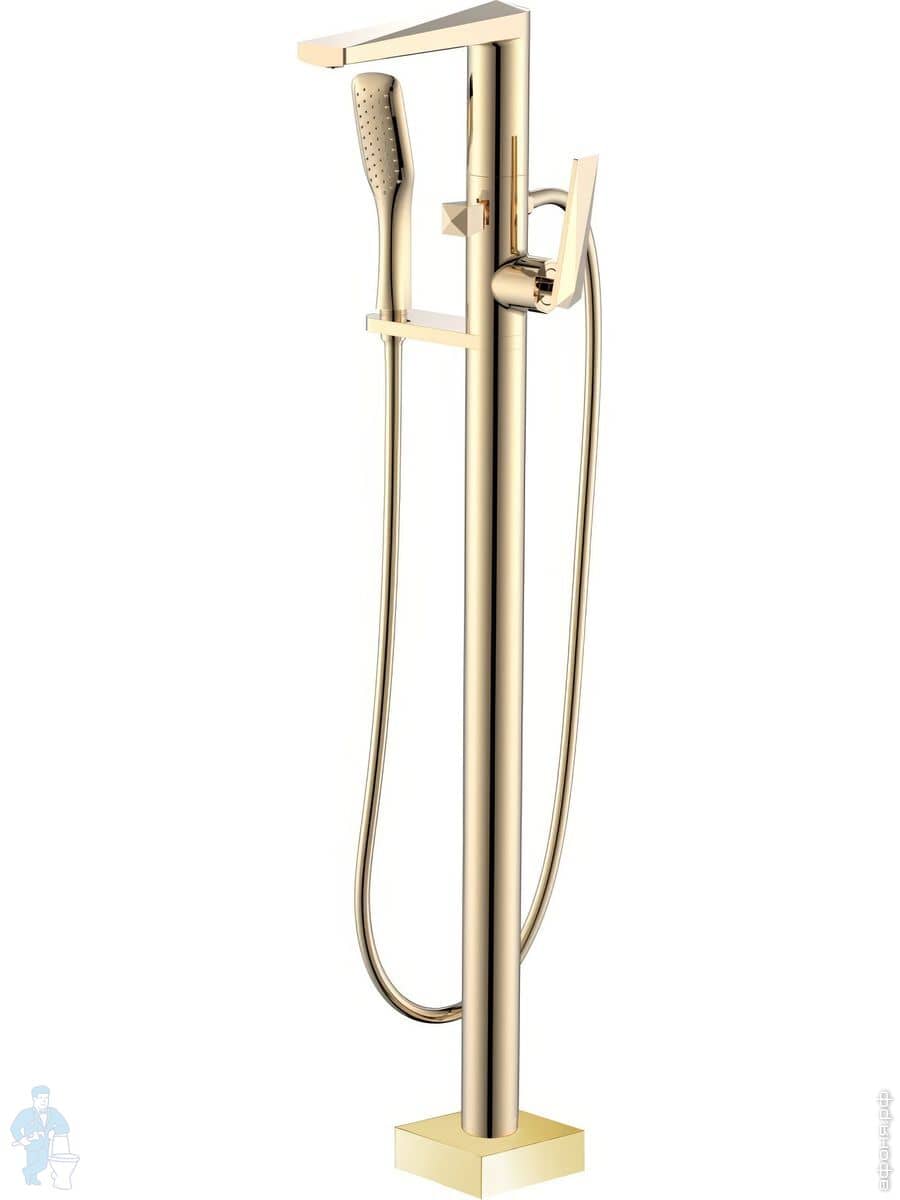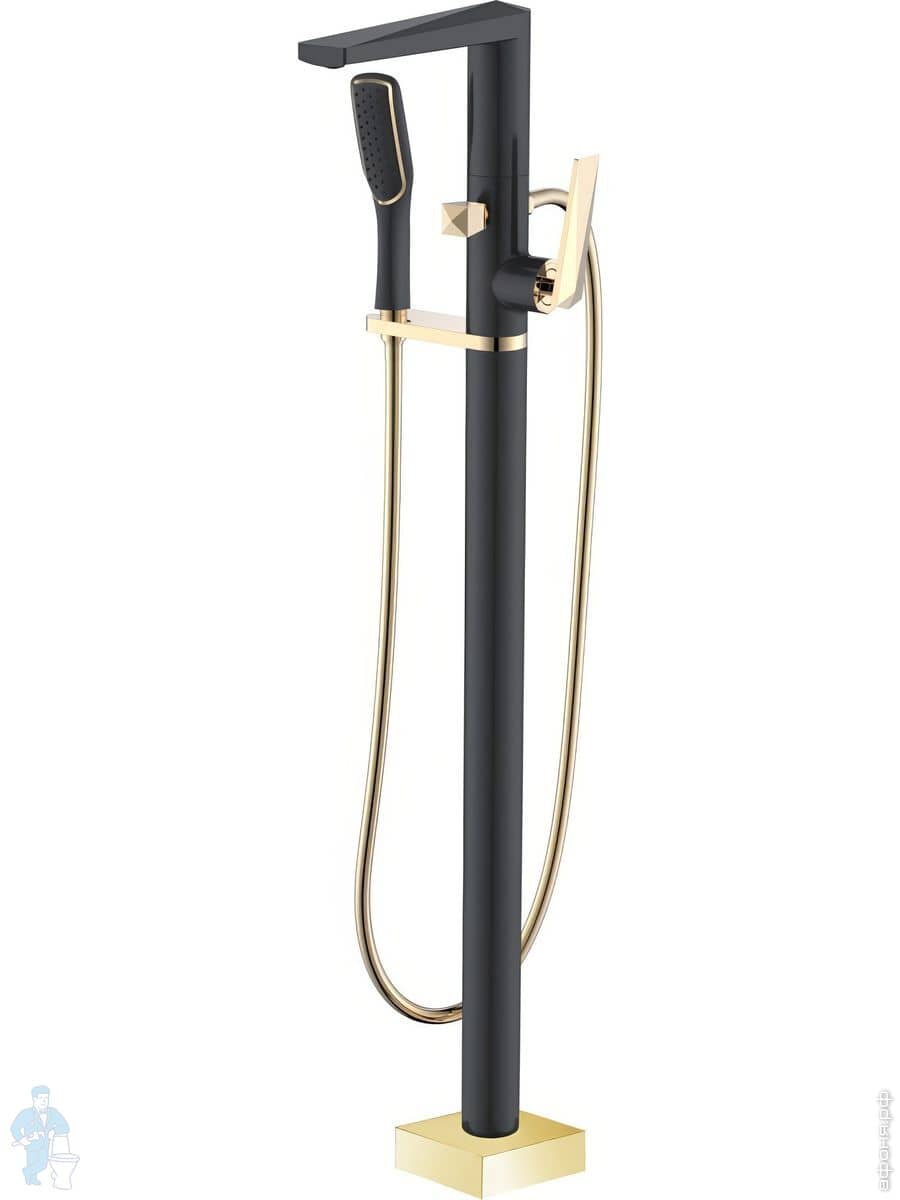 Смеситель Boheme Venturo 389-B для ванны/душа, напольный, однозахватный,с ручным душем,черный+золотоКод: 195012