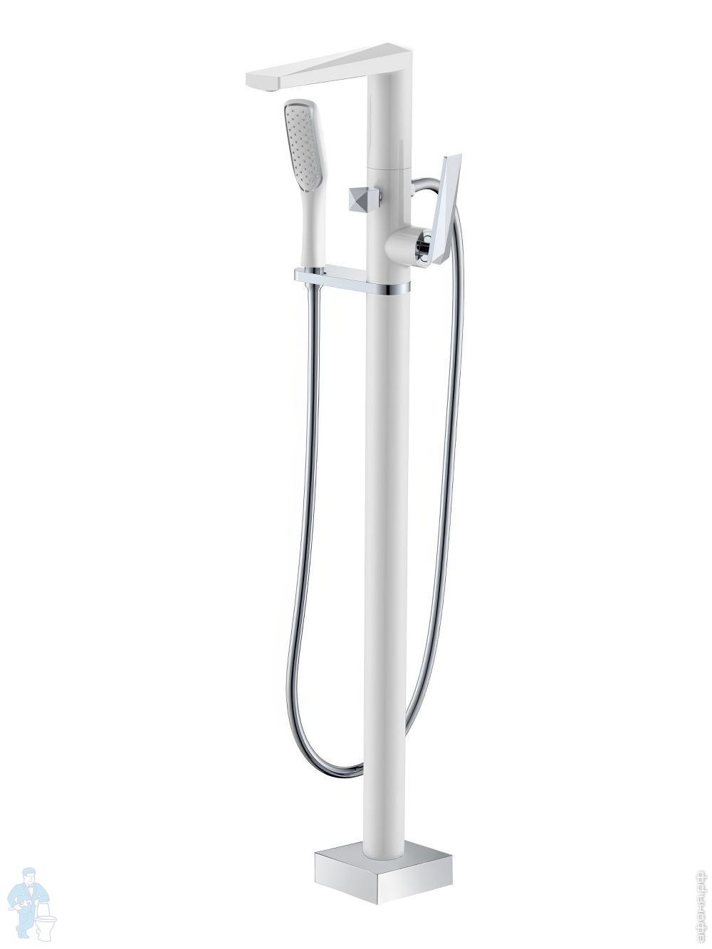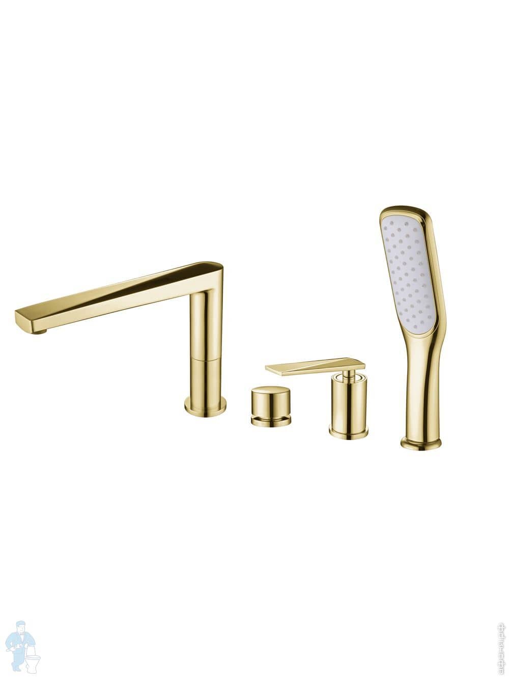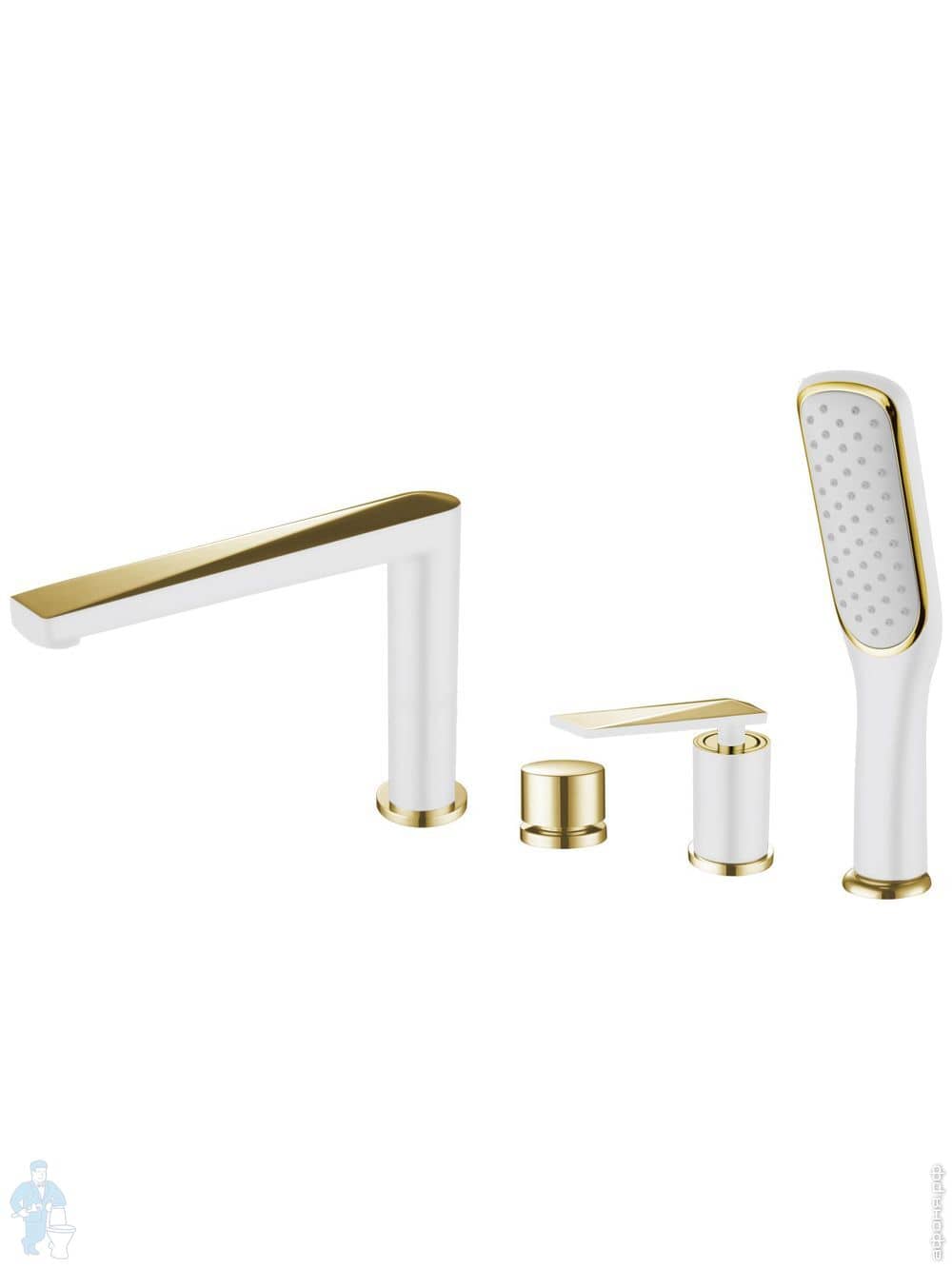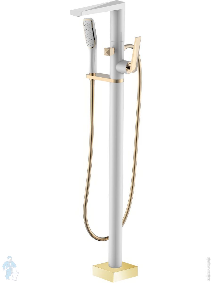 Смеситель Boheme Venturo 389-W для ванны/душа,напольный, однозахватный, с ручным душем, белый+золотоКод: 212383
