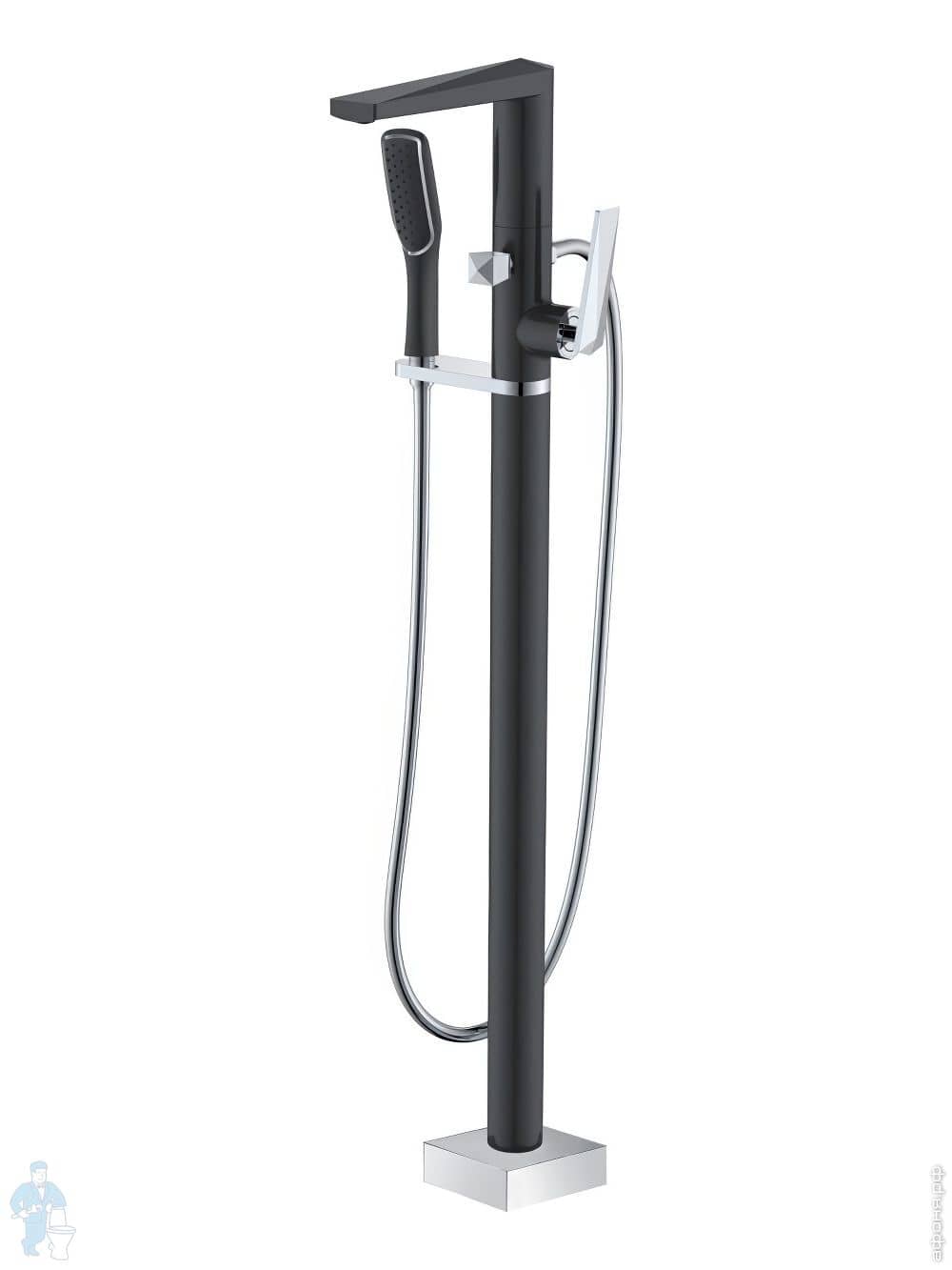 Смеситель Boheme Venturo 379-B для ванны/душа, напольный, однозахватный, с ручным душем, чёрный+хромКод: 356852