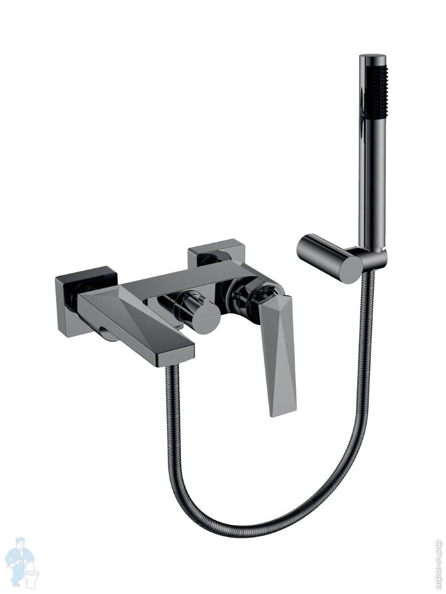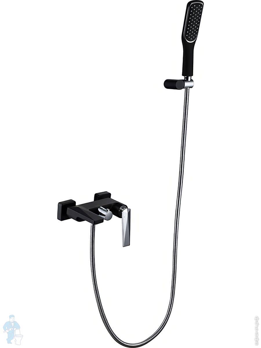 Смеситель Boheme Venturo 373-B для ванны/душа, настенный, однозахватный, с ручным душем, черный+хромКод: 149934
