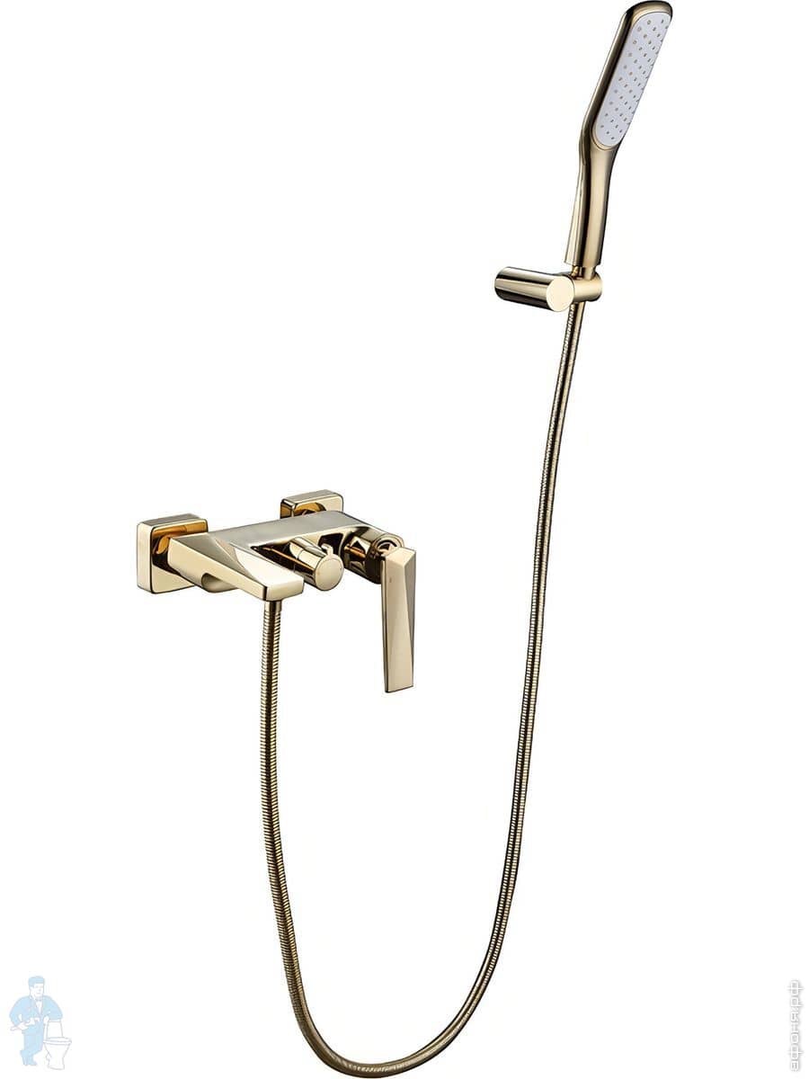 Смеситель Boheme Venturo 383-B для ванны/душа, настенный, однозахватный,с ручным душем,черный+золотоКод: 149458
