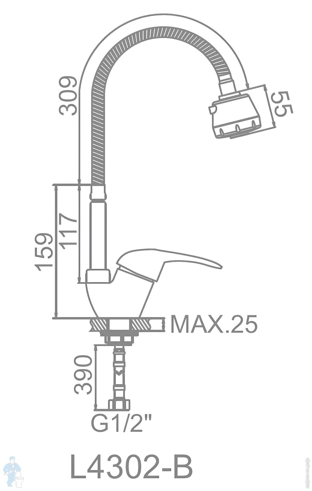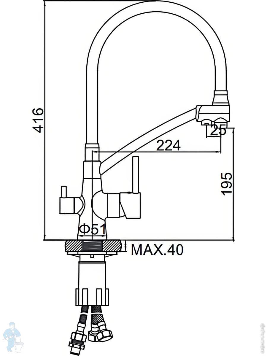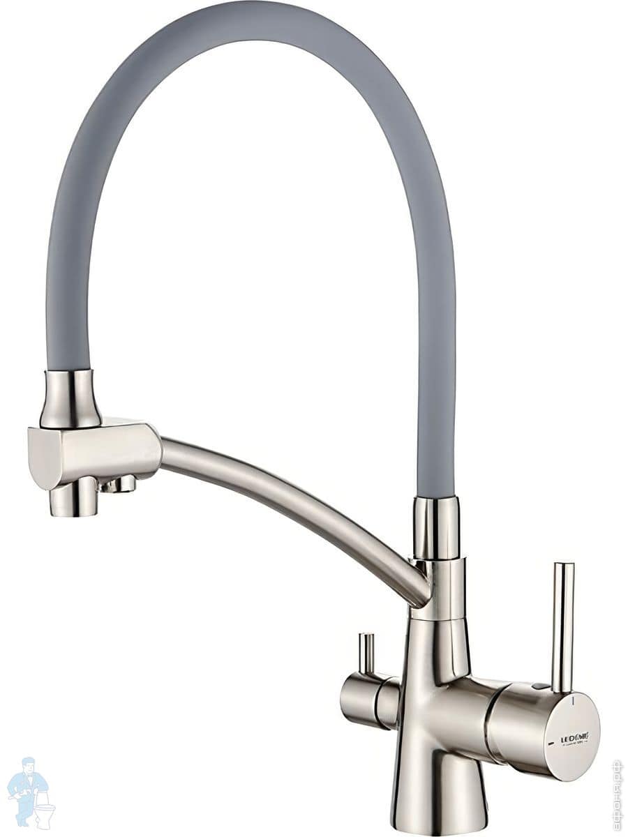 Смеситель Ledeme для кухни, с гибким изливом,однозахватный,с краном для питьевой воды,сатин L4855A-9Код: 295809
