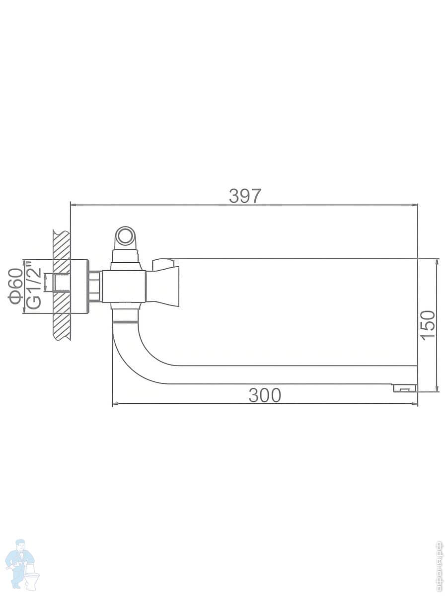 Смеситель Ledeme Н39-В настенный, для ванны и душа, поворотный излив, с душевой лейкой, хром L2139-BКод: 295851