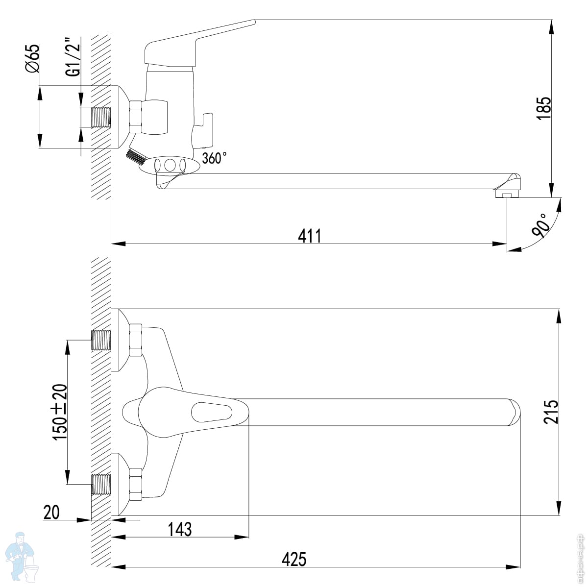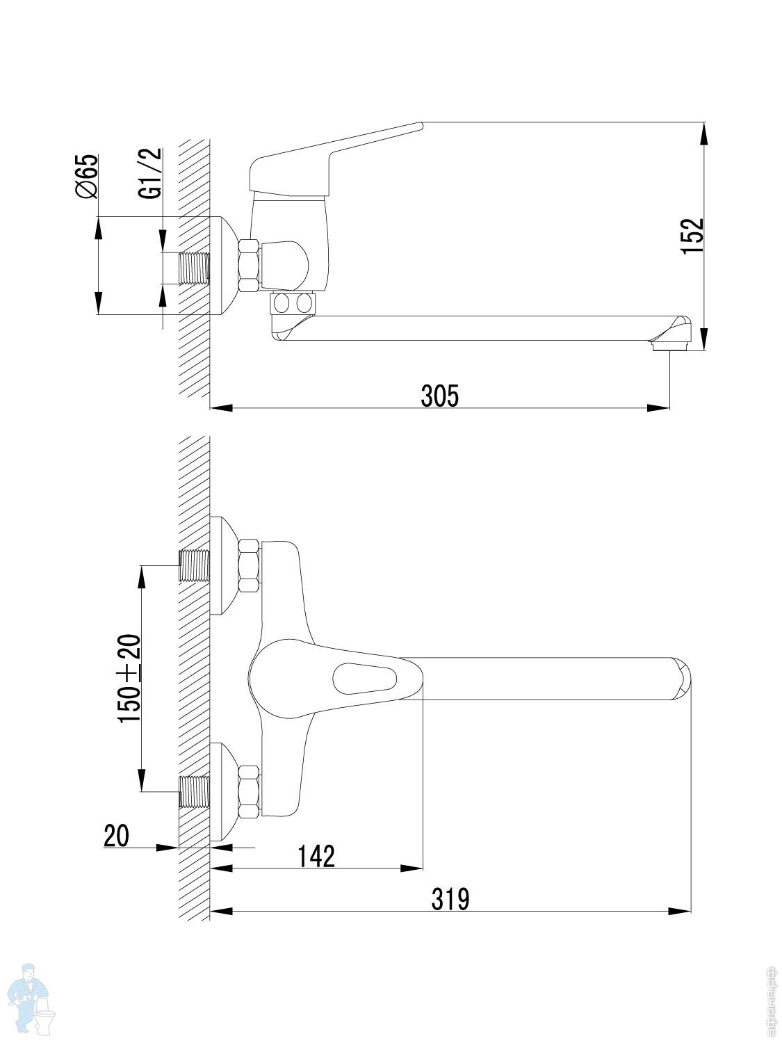 Смеситель для раковины Lemark LUNA LM4111C настенный, однозахватный, длинный излив 305мм, цвет: хромКод: 221641
