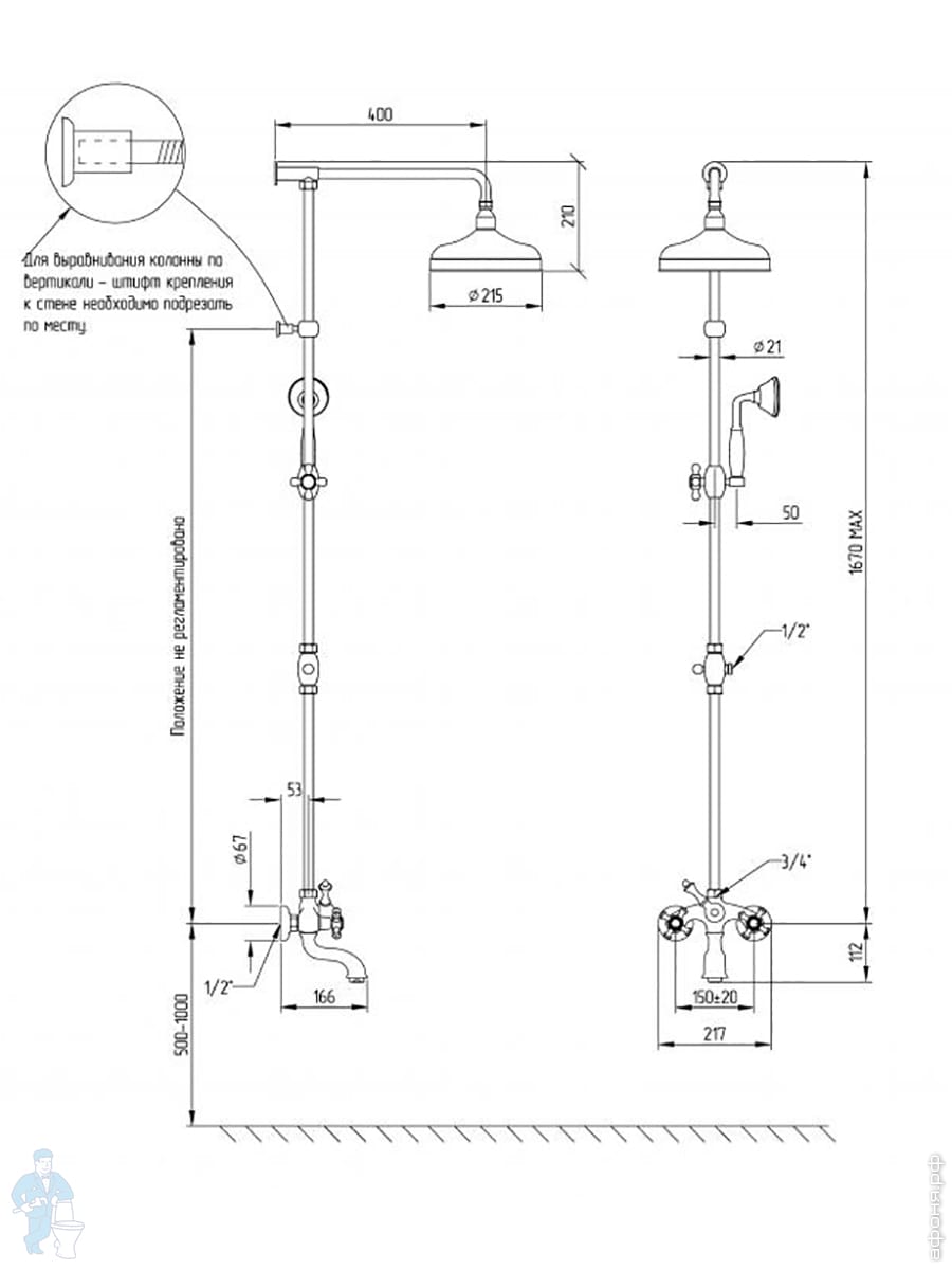 Душевая система Migliore PRESTIGE с настенным смесителем для ванны/душа, длинный излив, золото 32144Код: 336064