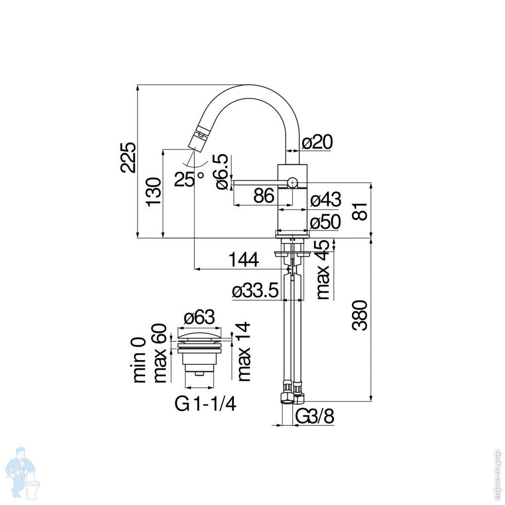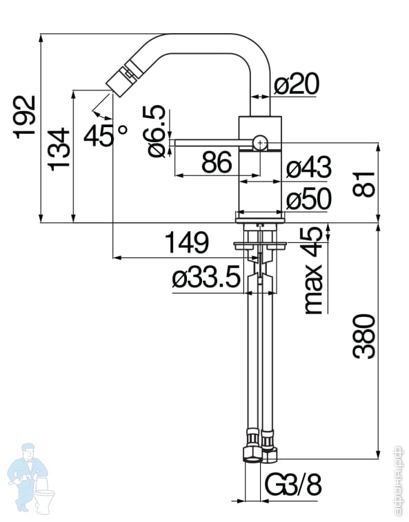 Смеситель NOBILI VELIS для биде, однозахватный, поворотный излив, Eco, д/к, кр. золото VE125139/2RCPКод: 268480