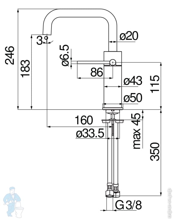 Смеситель NOBILI VELIS для раковины, однозахватный, высокий излив, д/к, Eco, кр.золото VE125158/2RCPКод: 269431
